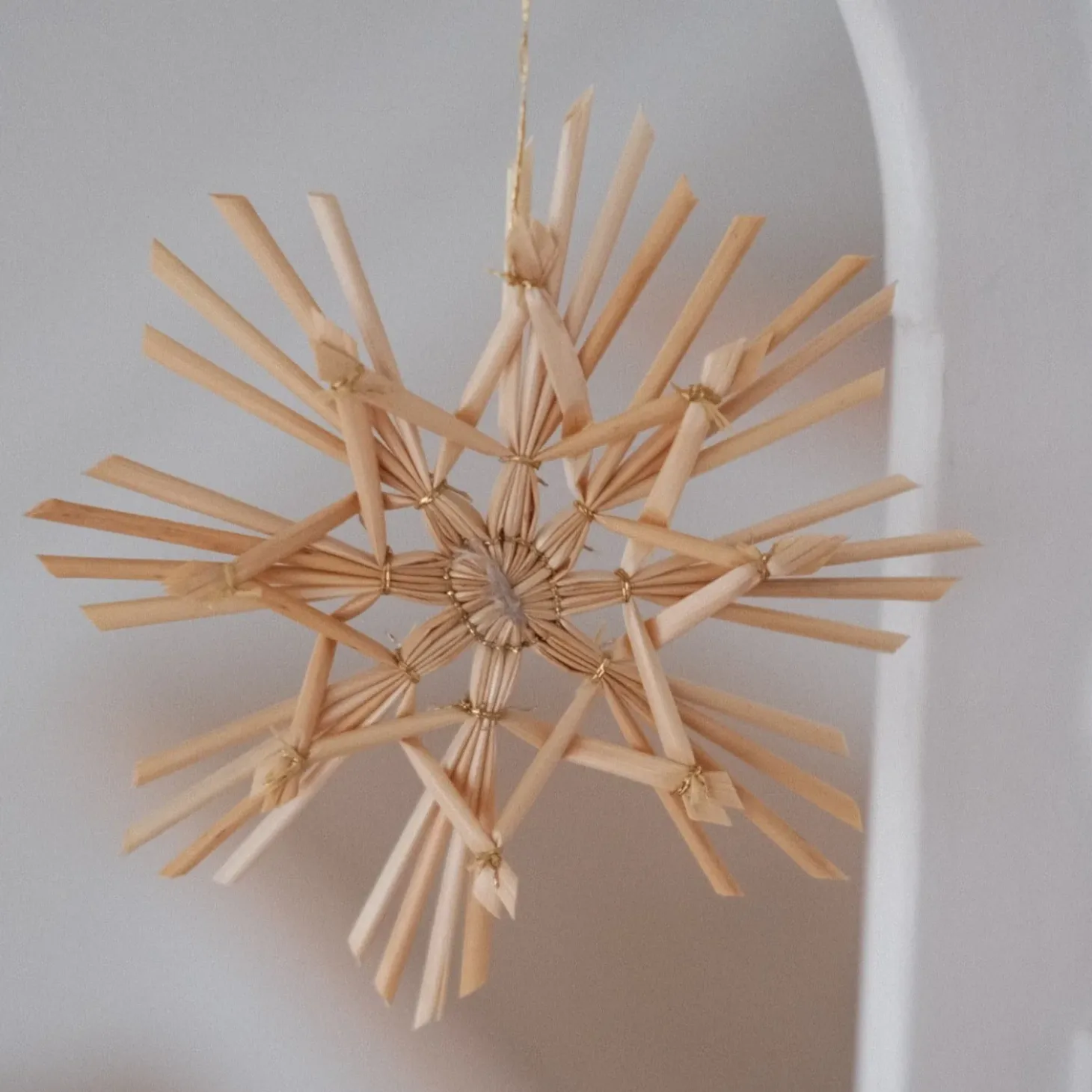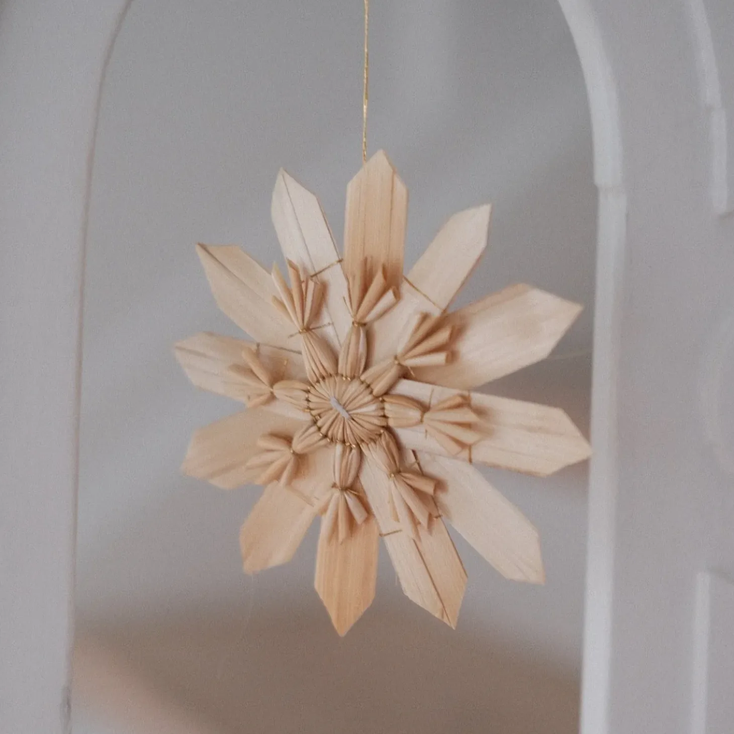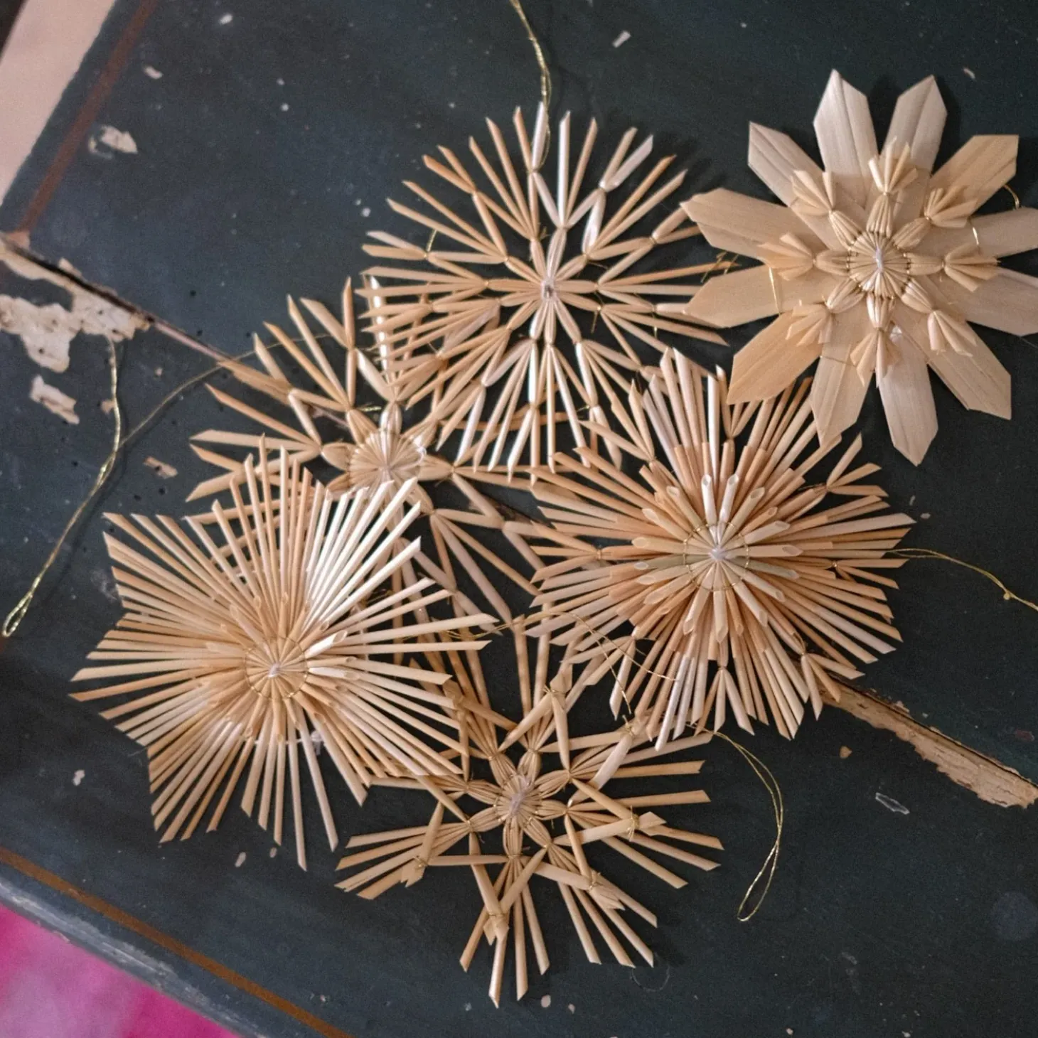 Smukke nostalgiske strå-pynt, som mimer snefnug. Der er 12 i en æske og 6 forskellige varianter. De er så stemningsfulde og kan fungere på juletræet man også så mange andre steder. Farve: Natur