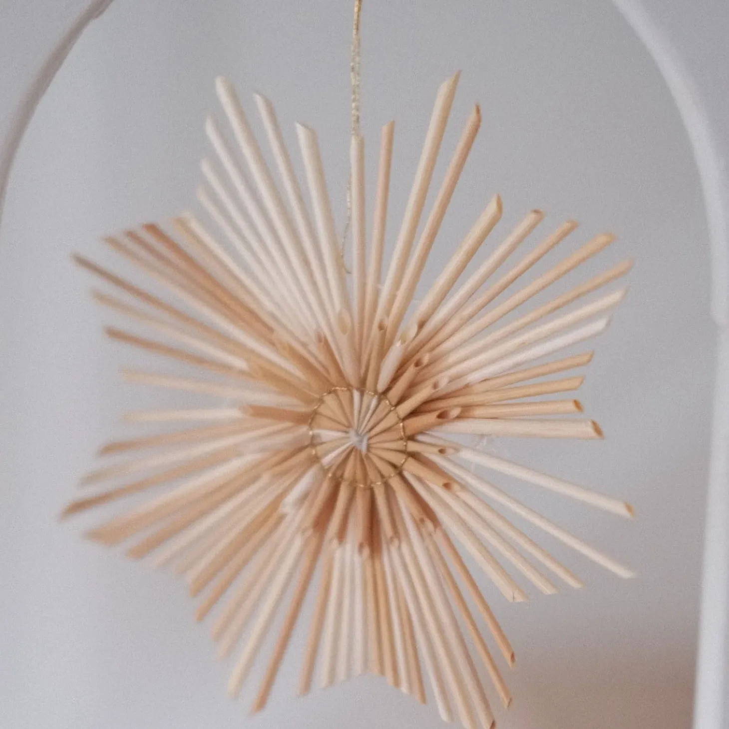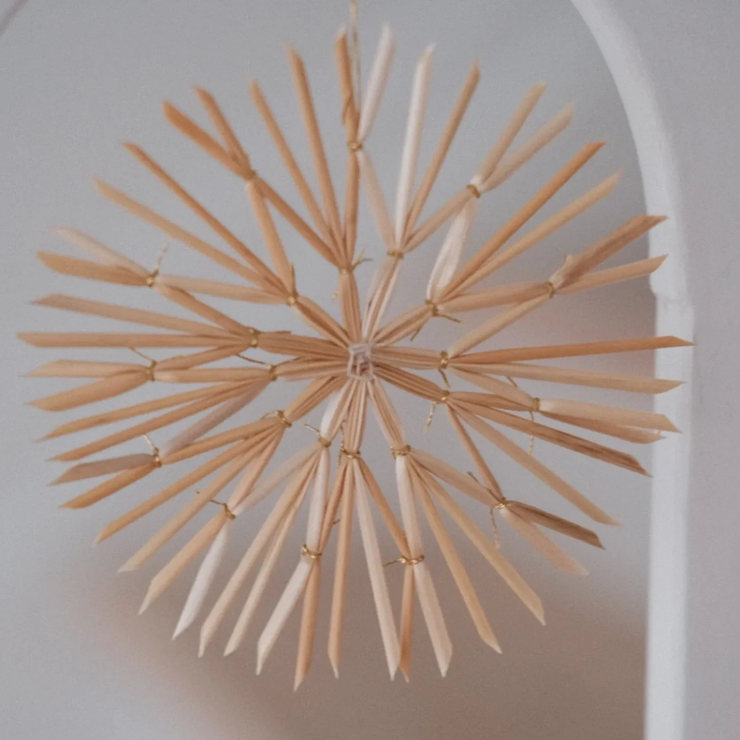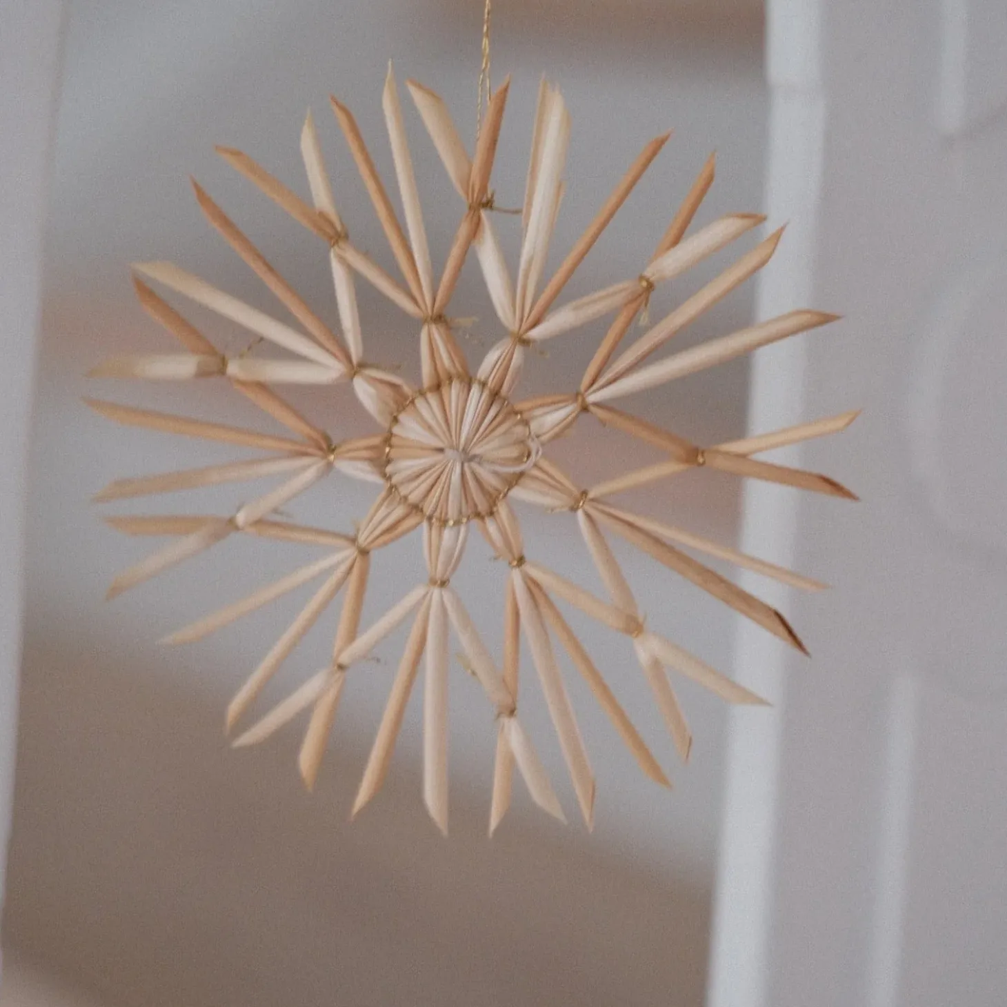 Smukke nostalgiske strå-pynt, som mimer snefnug. Der er 12 i en æske og 6 forskellige varianter. De er så stemningsfulde og kan fungere på juletræet man også så mange andre steder. Farve: Natur