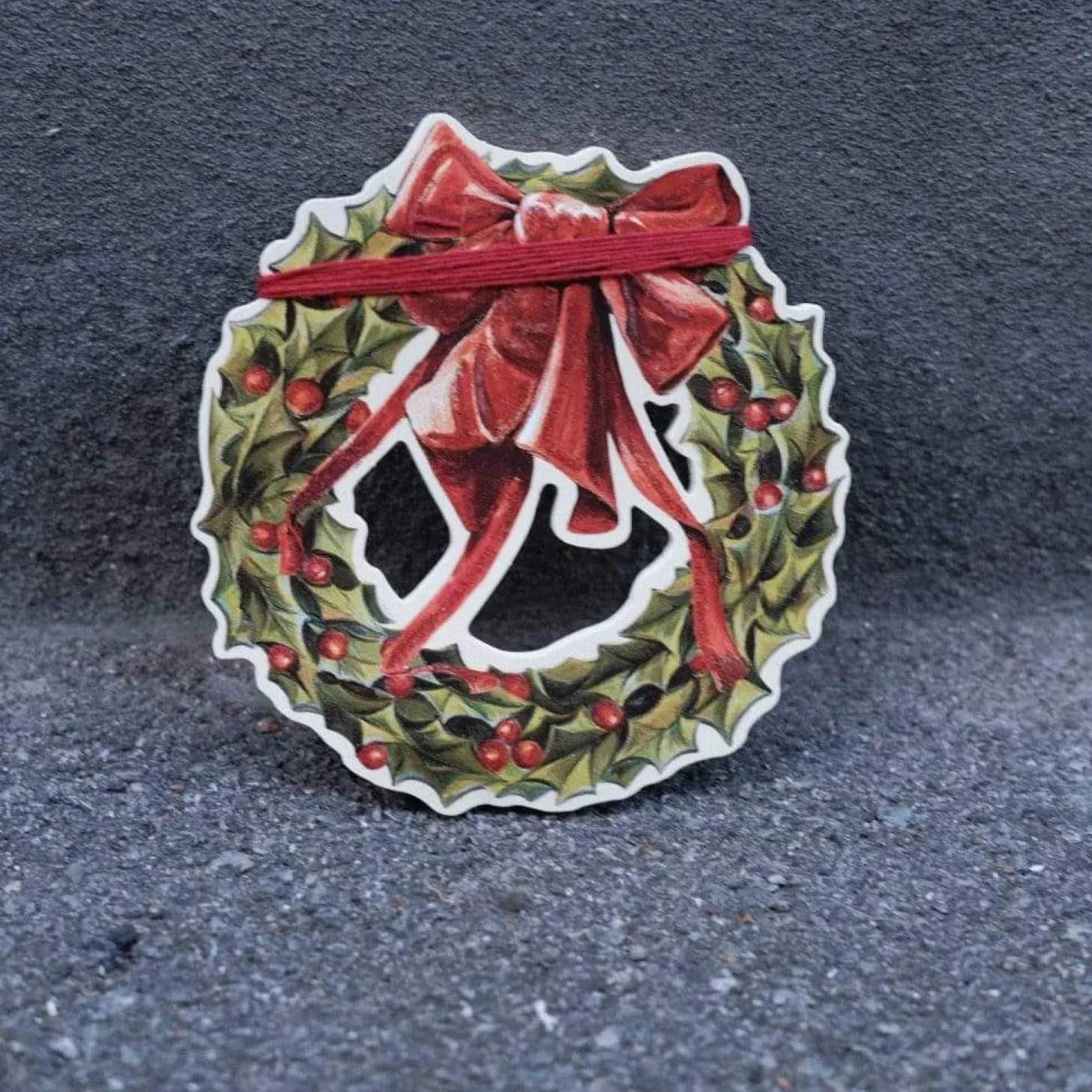Navn: Christmas Wreath GarlandStørrelse: Hver krans måler ca 14,5 cm, og der er 10 kranse på en snor. Den er enkelsidet.Materiale: Papir med glitter