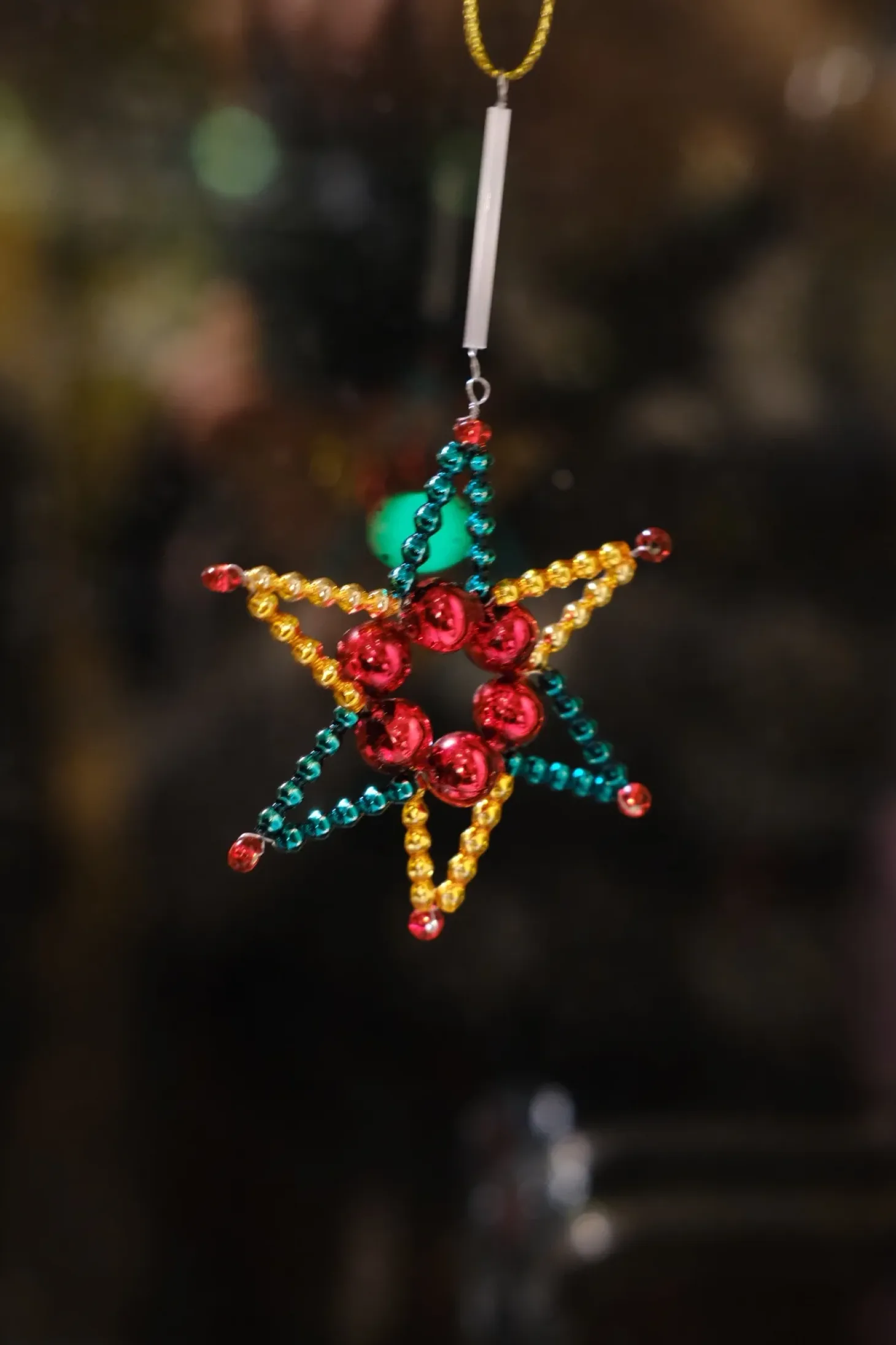 Den skønneste stjerne i glasperler! Den er så stemningsfuld og kan fungere på juletræet, men også så mange andre steder. Stjernen er lavet i tjekkiet efter gammel tjekkisk tradition.Farve: Rød, Grøn, Guld