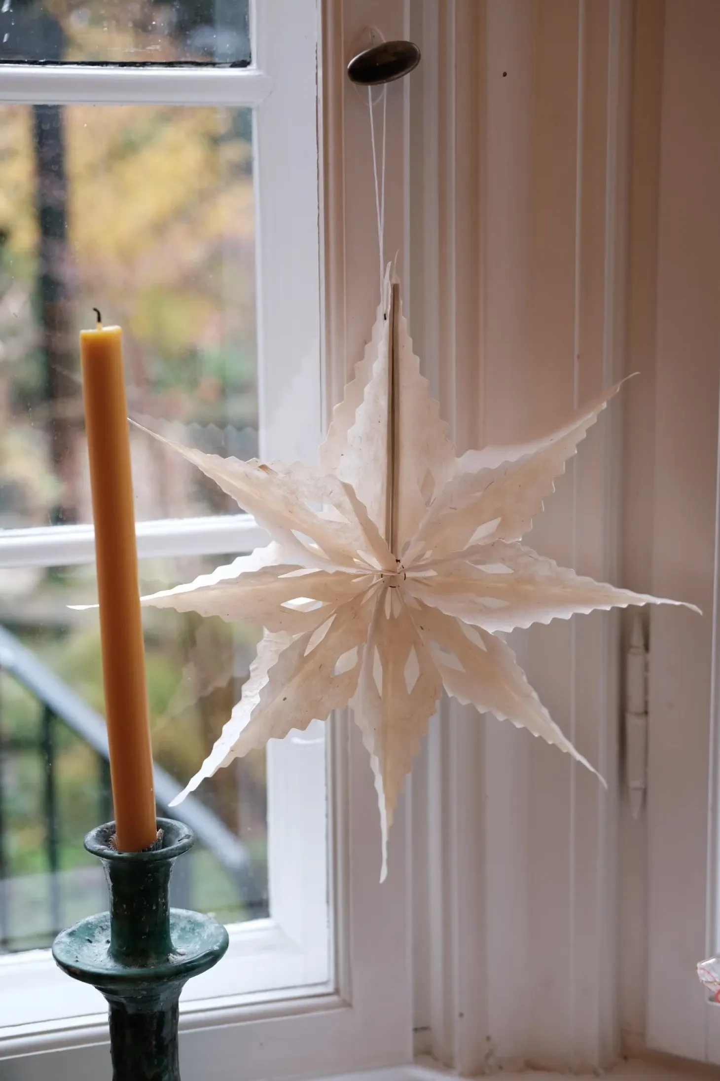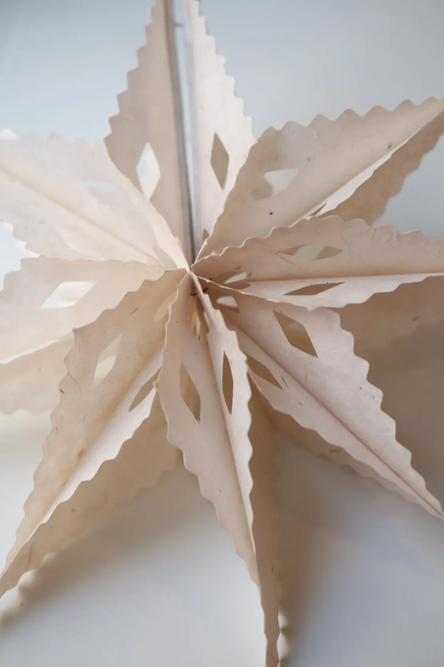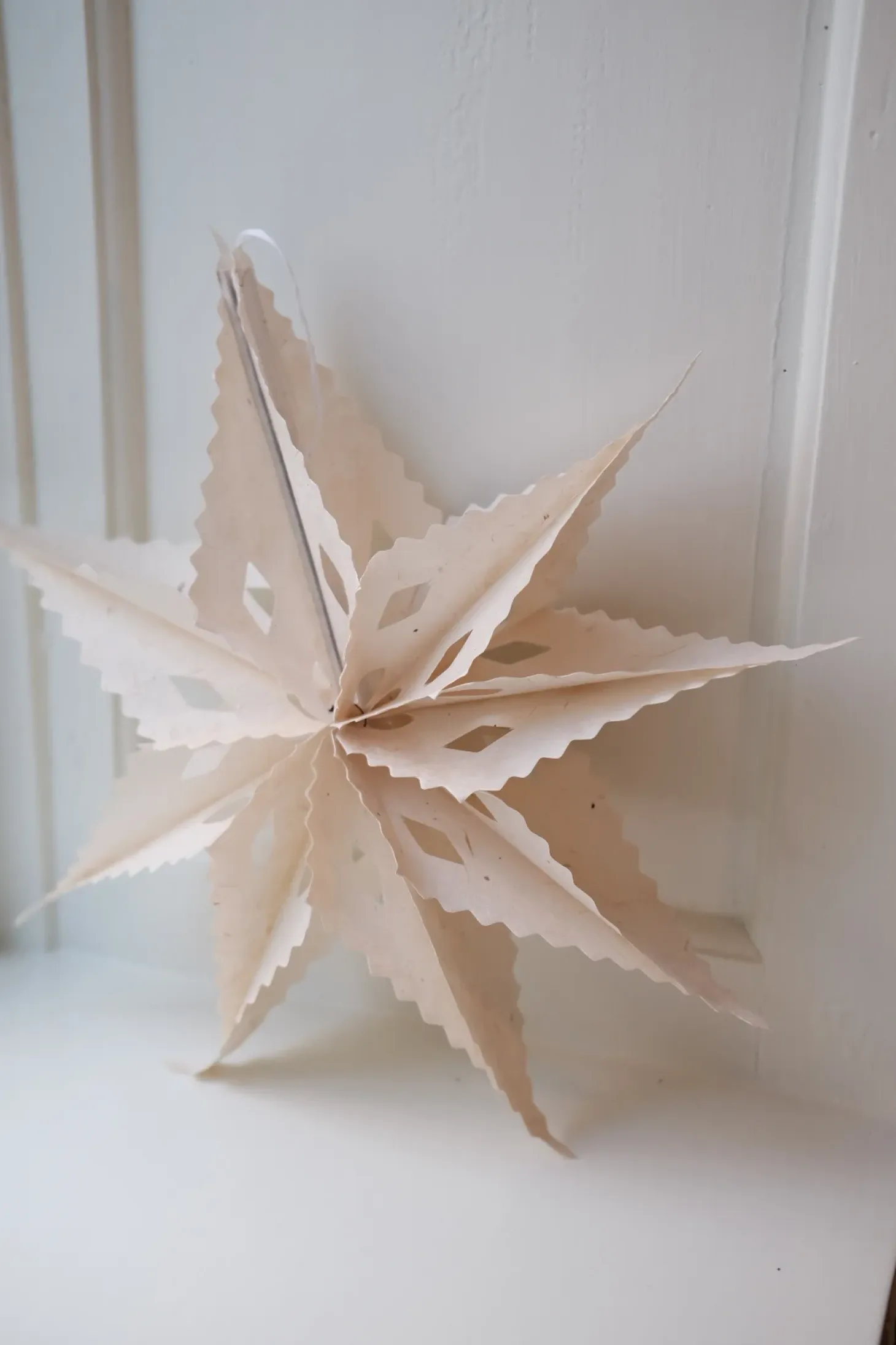 Julestjerne i et helt særligt papir og i enkel hvid. Papiret er lavet af barken fra en busken Daphne Cannabina, der vokser i landskab over 6500meters højde.