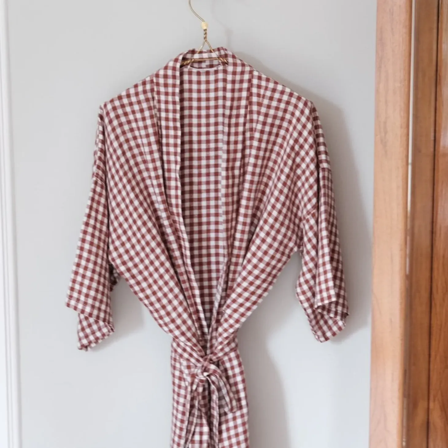 Kimono fra franske Linge Particulier.Farve: Vichy Brique, murstensrød