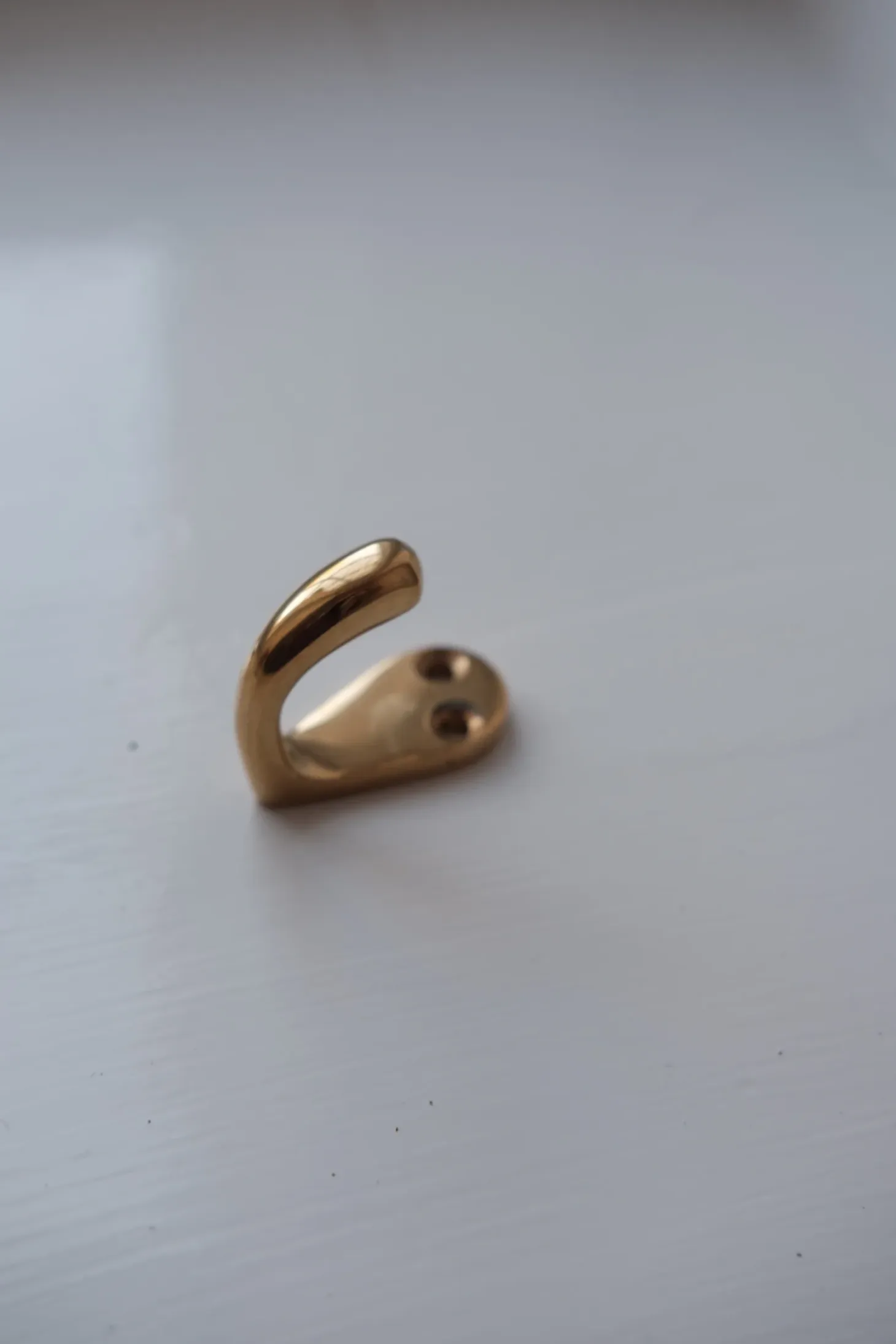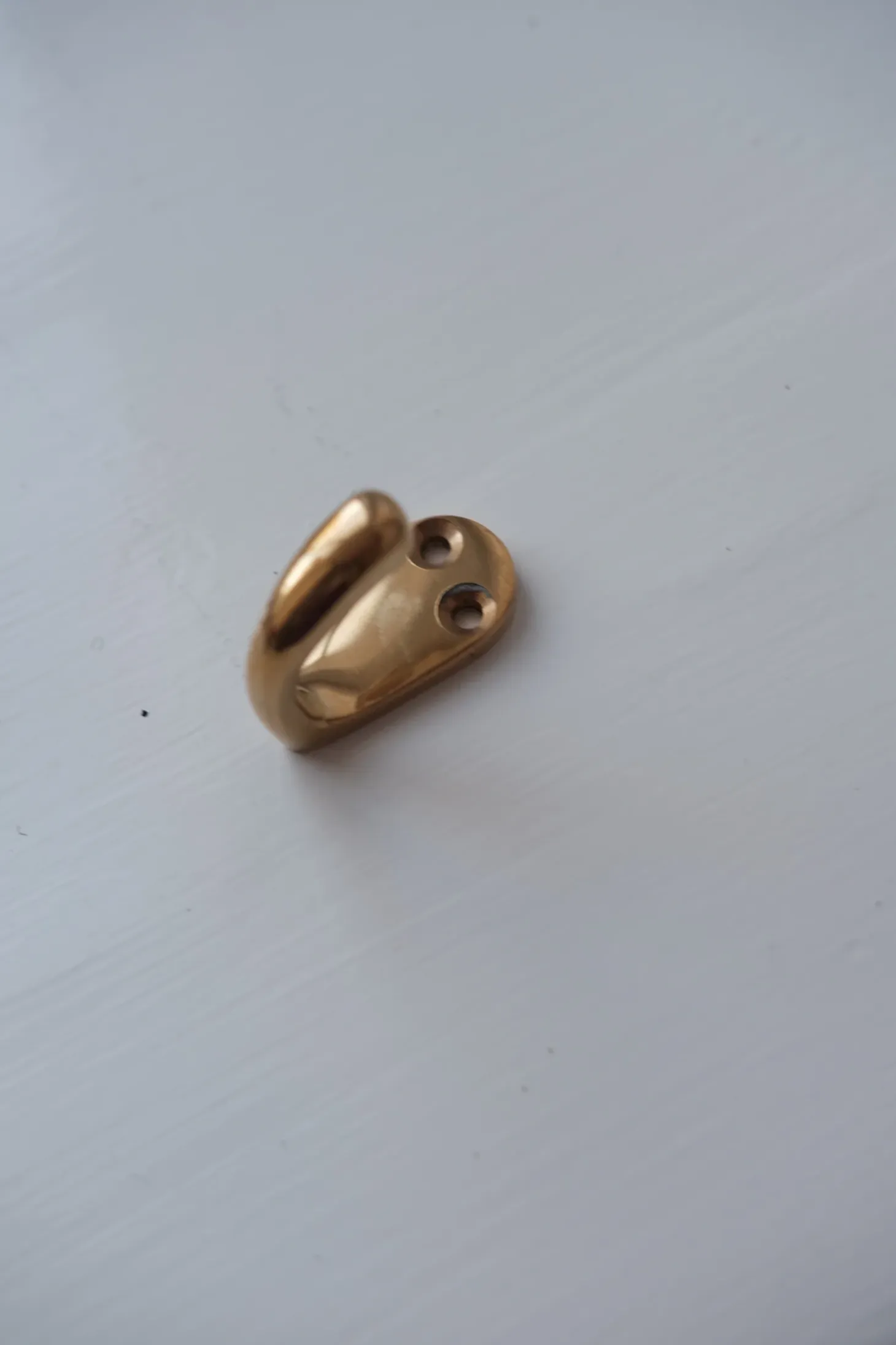 En knage i messing uden lak. Det er et meget klassisk ophæng, som kan bruges til et håndklæde i badeværelset eller viskestykker i køkkenet. Den er enorm praktisk for den fylder hverken fysisk eller visuelt. Krogen er bare helt enkel og fin. Den er uden lak, så den vil patinerer. Knagen kan naturligvis pudses op.