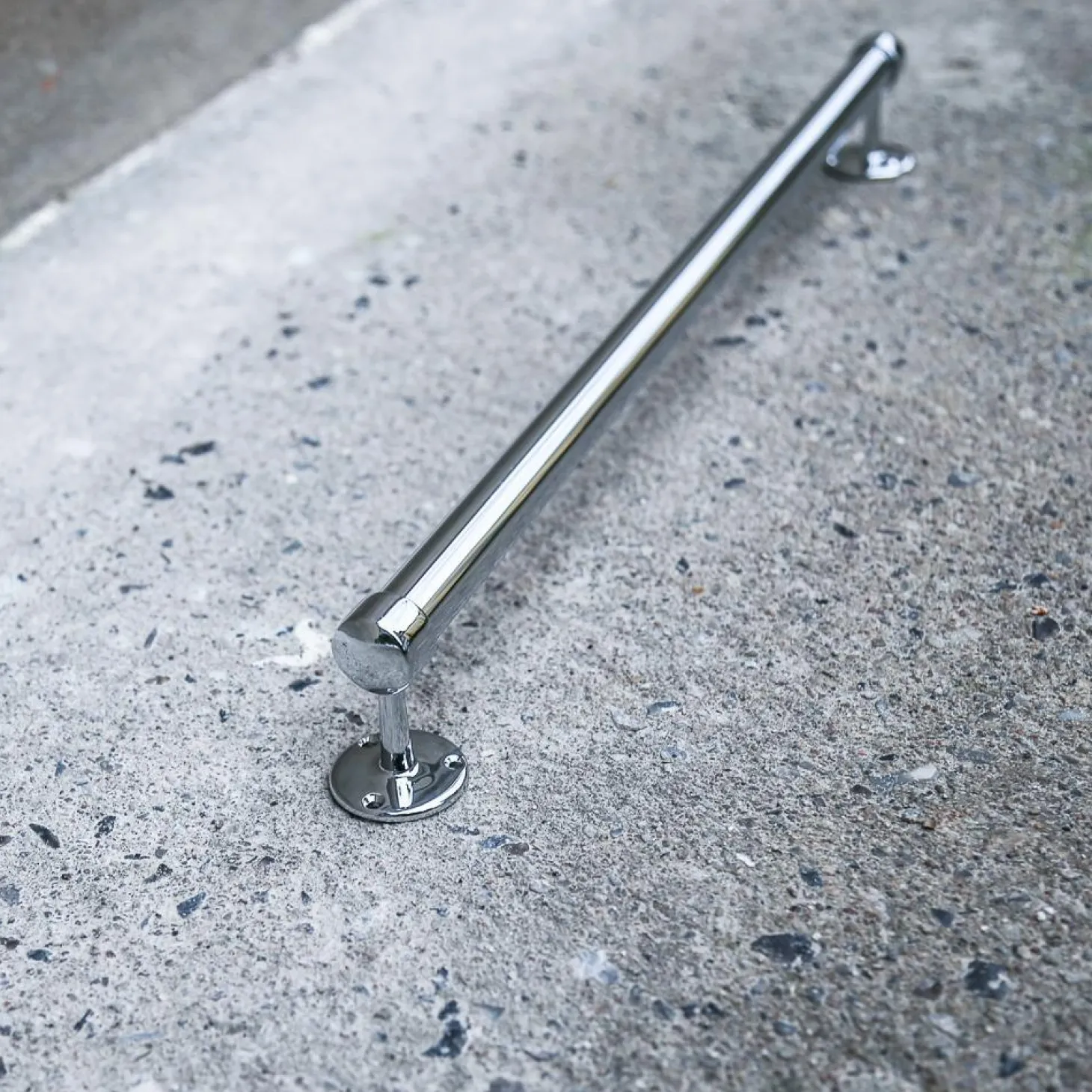 Størrelse: Røret i sig selv er 2,5cm i diameter og længden er 40cm. Endestykkerne er 7cm dybe og afstanden imellem stang og væg vil blive 4,5cm. Pladen der skrues i væggen har en diameter på 4,8cm.