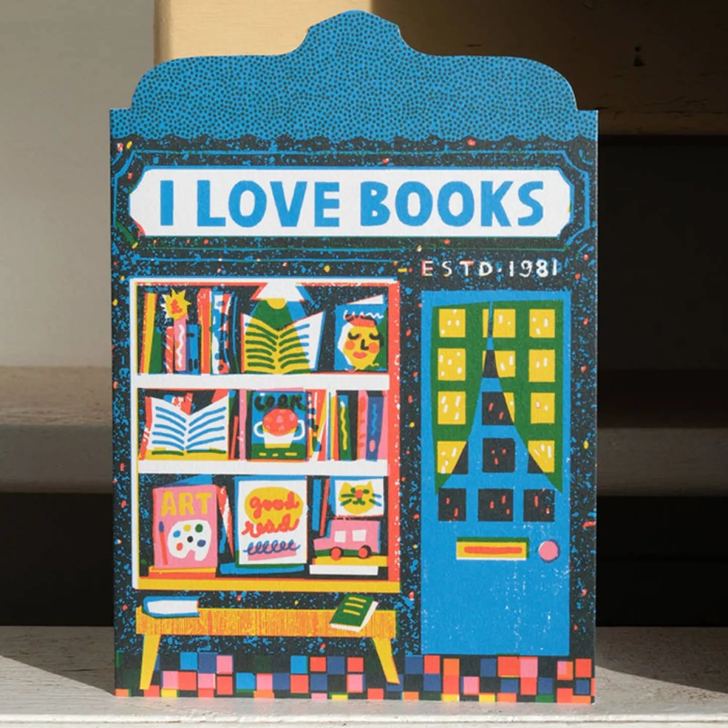 Designeren bag det her fine kort er englænderen Louise Lockhart og hun er besat af smukke butiksfronter og har derfor lavet denne serie kort med forskellige butikker. Det her kort ville da være perfekt at sende til en bogelsker.
