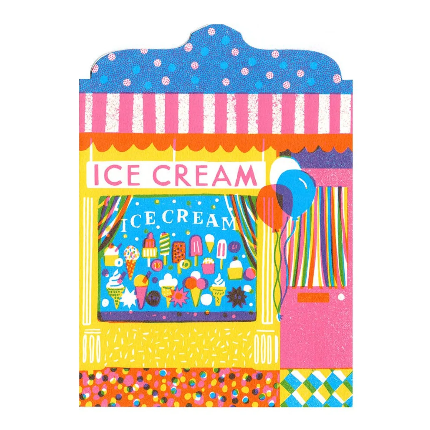 Louise Lockhart er one-woman-band bag det engelske firma The Printed Peanut. Hun er besat af butiksfronter, så det skulle selvfølgelig også bruges på et kort. Det her er da genialt til en med en sød tand.