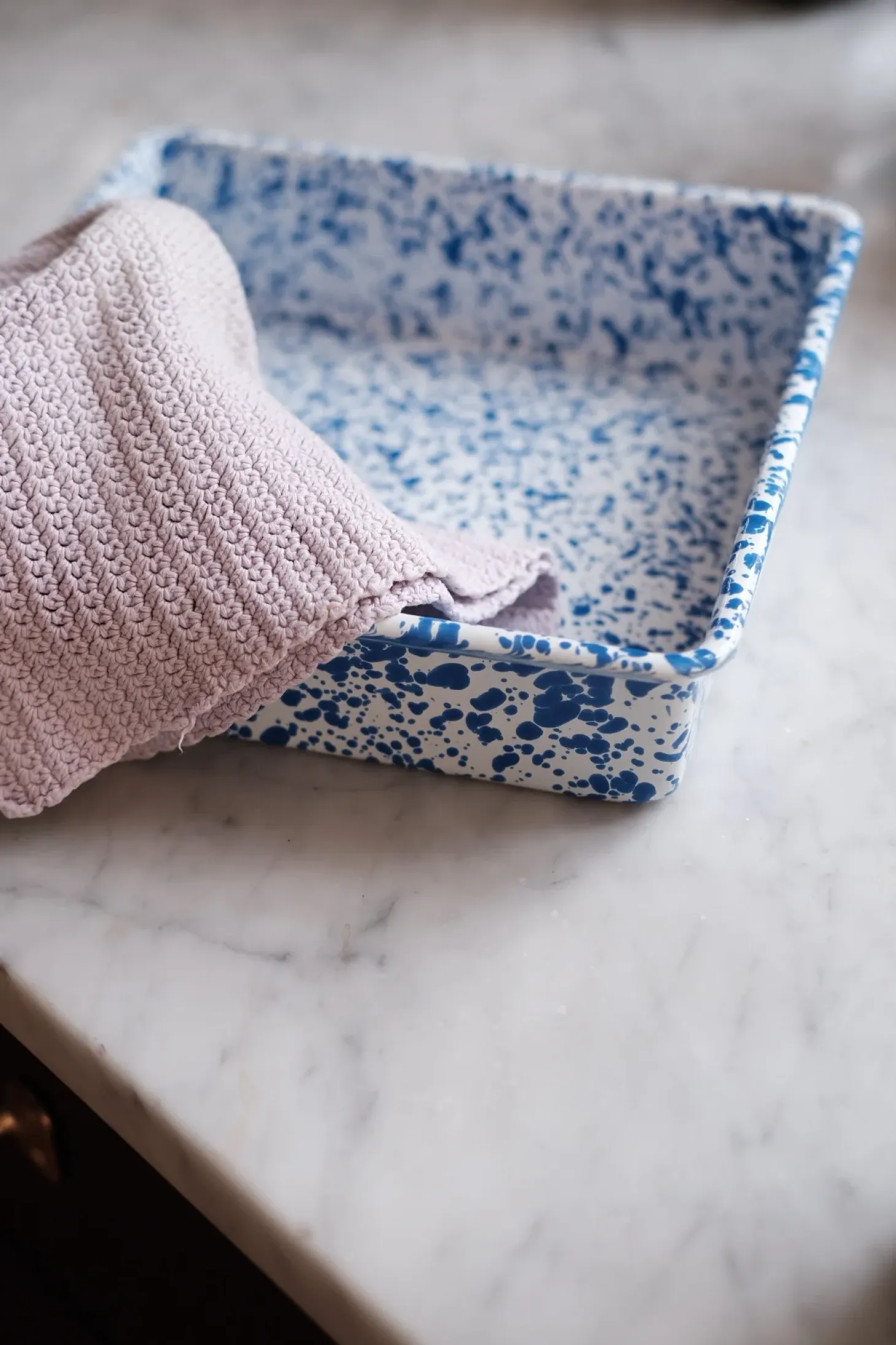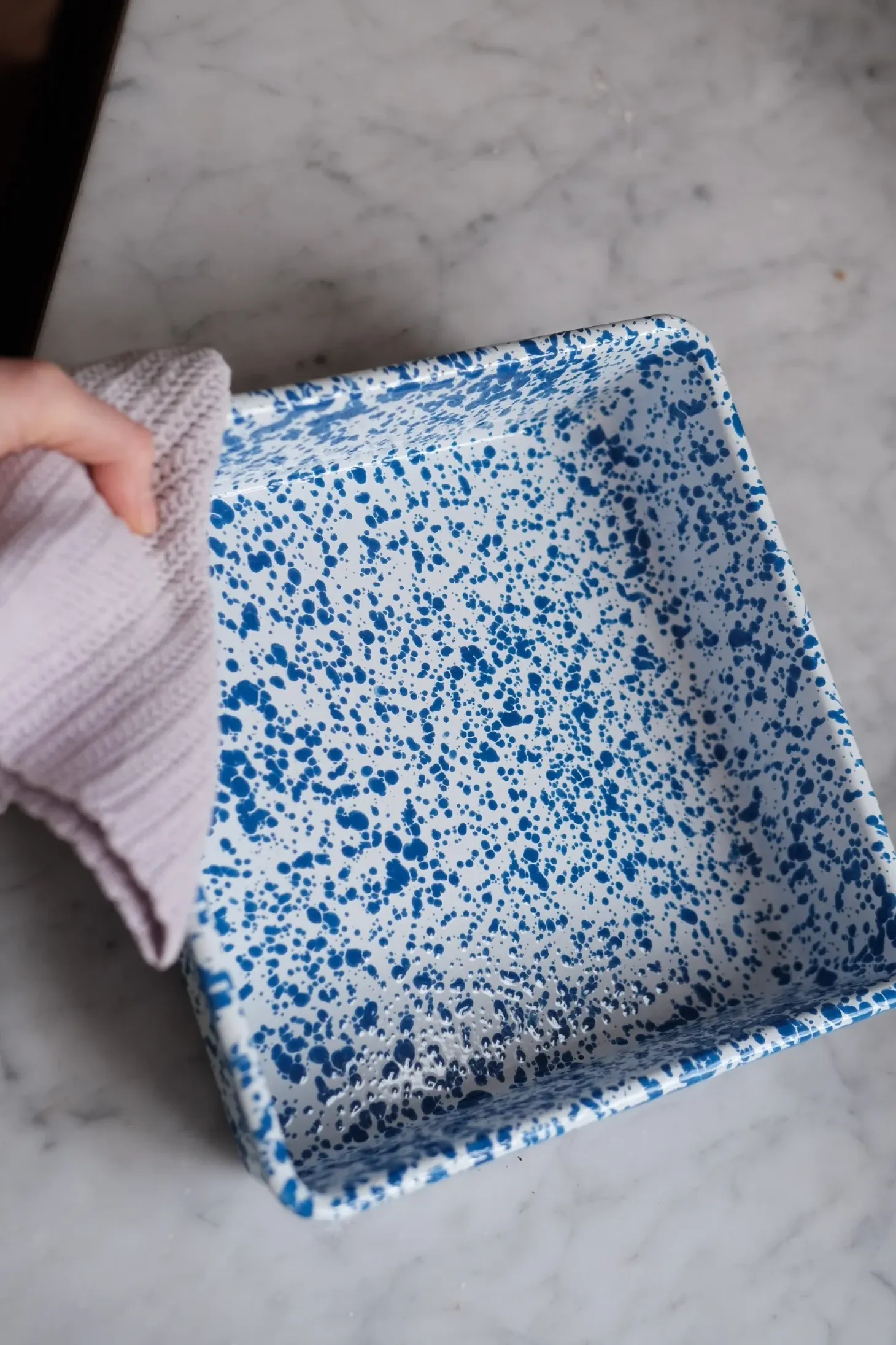 Kvadratisk Fad • Emalje • Splatter Blå • UDGÅR