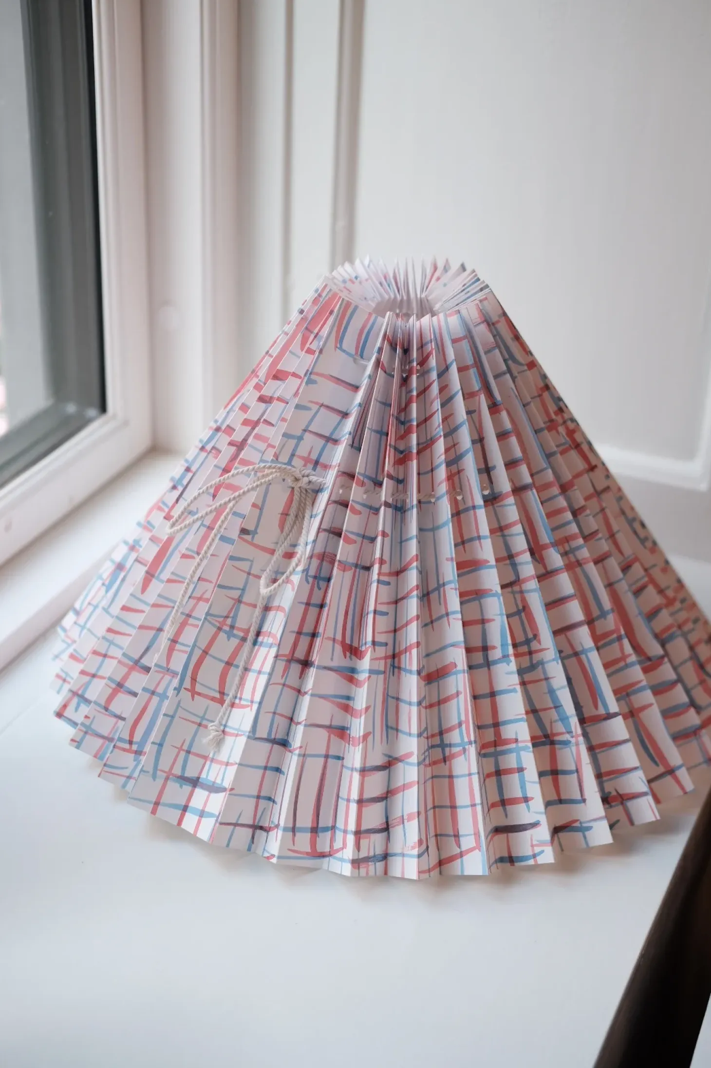 Lampeskærm • Håndlavet Plisseskærm • 26 cm • Blå & Rød Tern