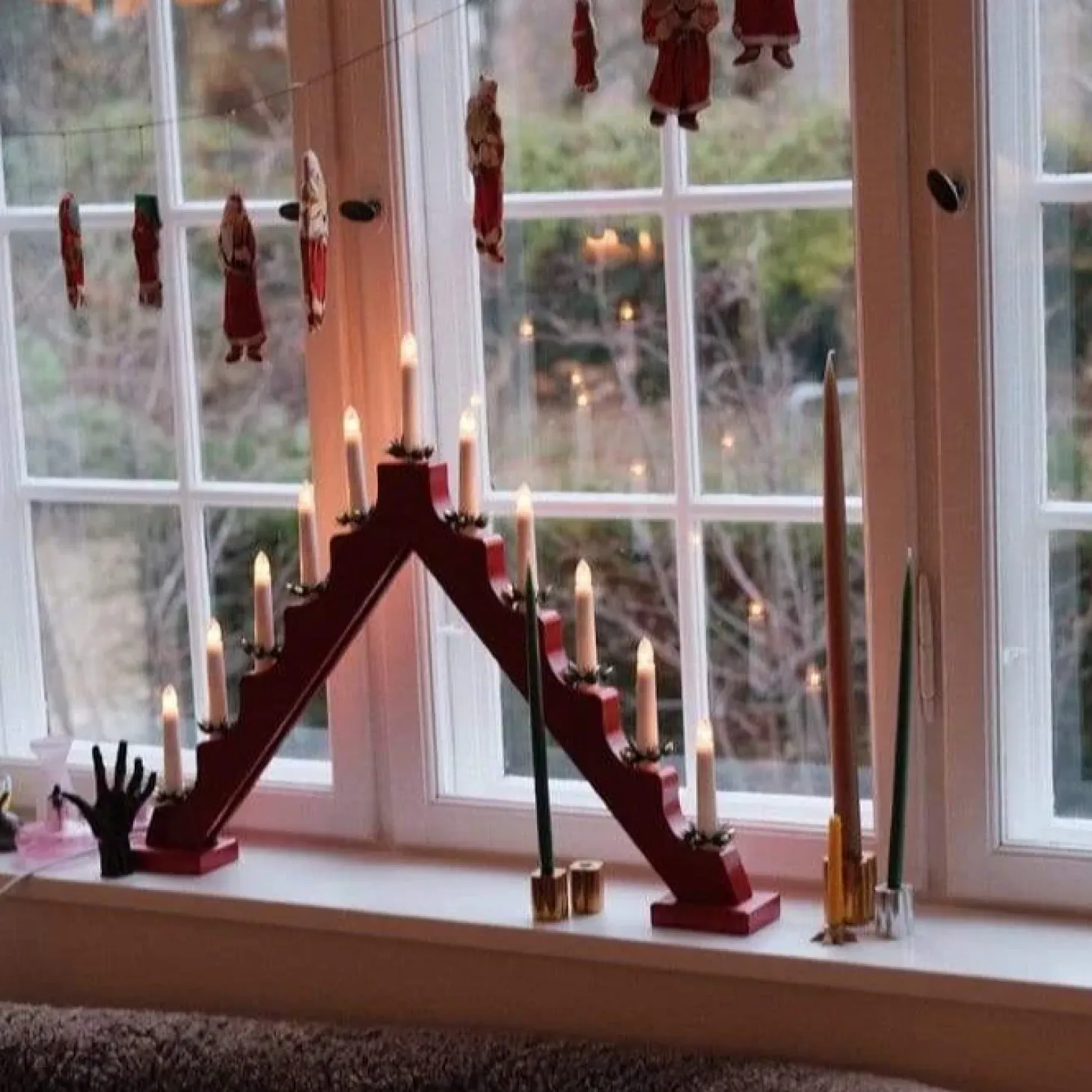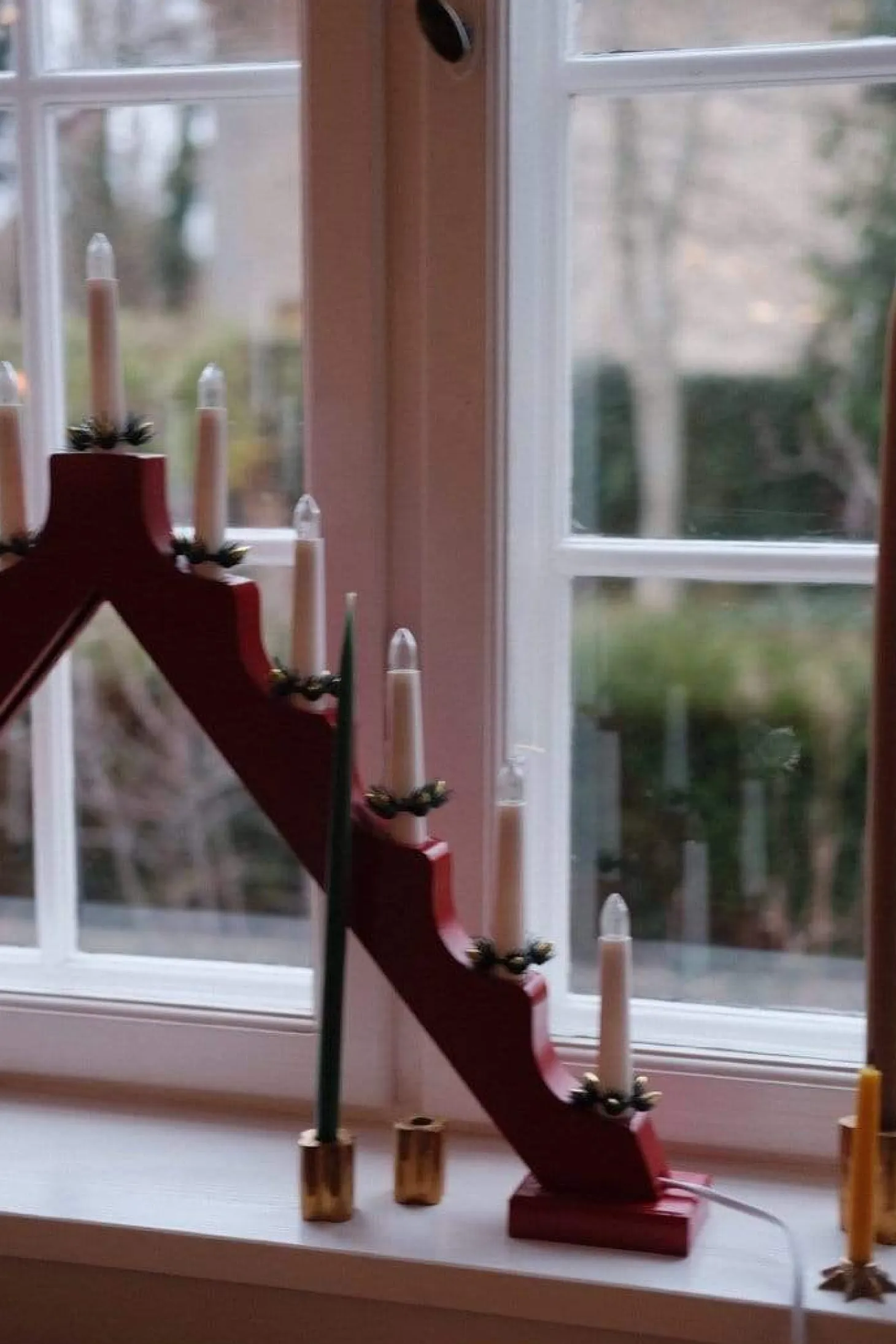 Træ julestage med 11 lys med 3watt hver. Jeg har min i vinduet med en timer, så den er automatisk tændt i de mørke timer. Det ser vildt hyggeligt ud.