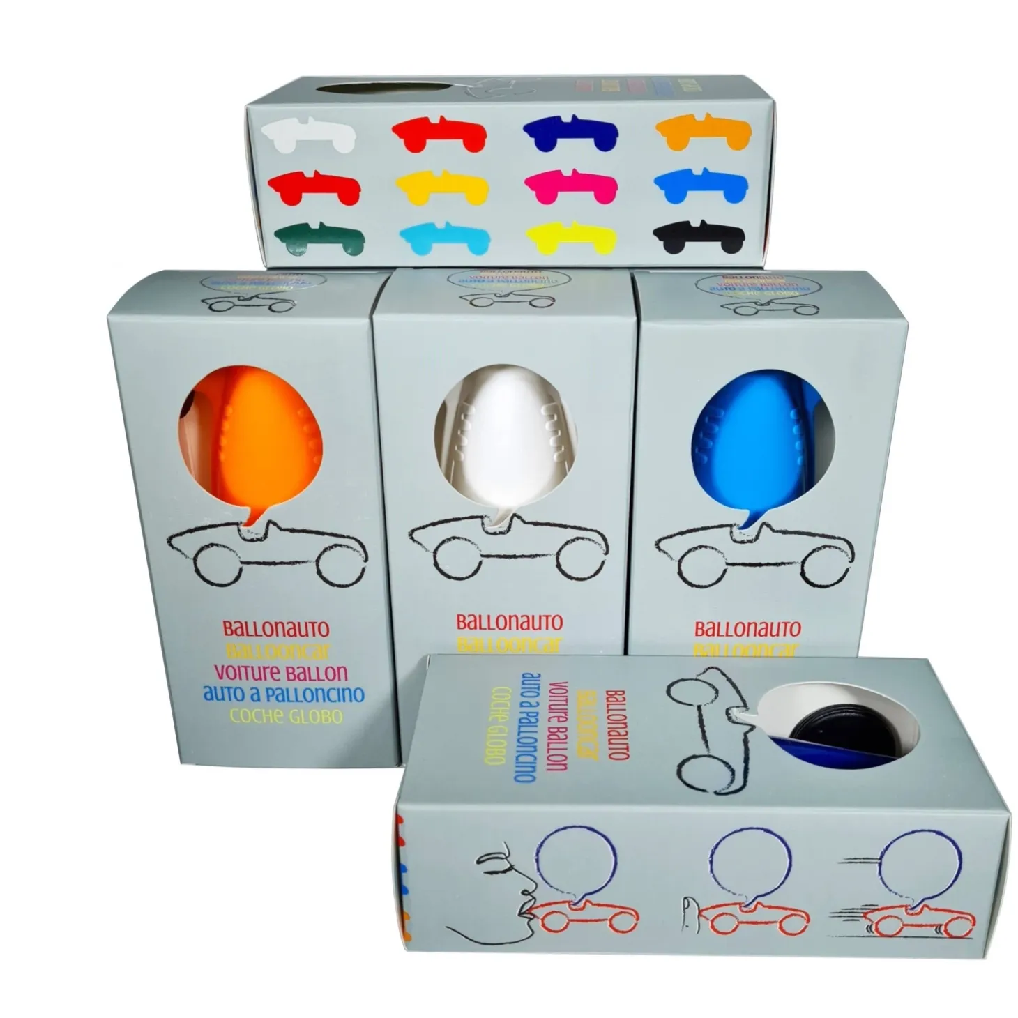Ballon bilen. Et simpelt princip, der har eksisteret i årtier i en bred vifte af designs. Very simple. Pust ballonen op med mundstykket, hold hullet med fingeren, sæt bilen på jorden og væk med fingeren!