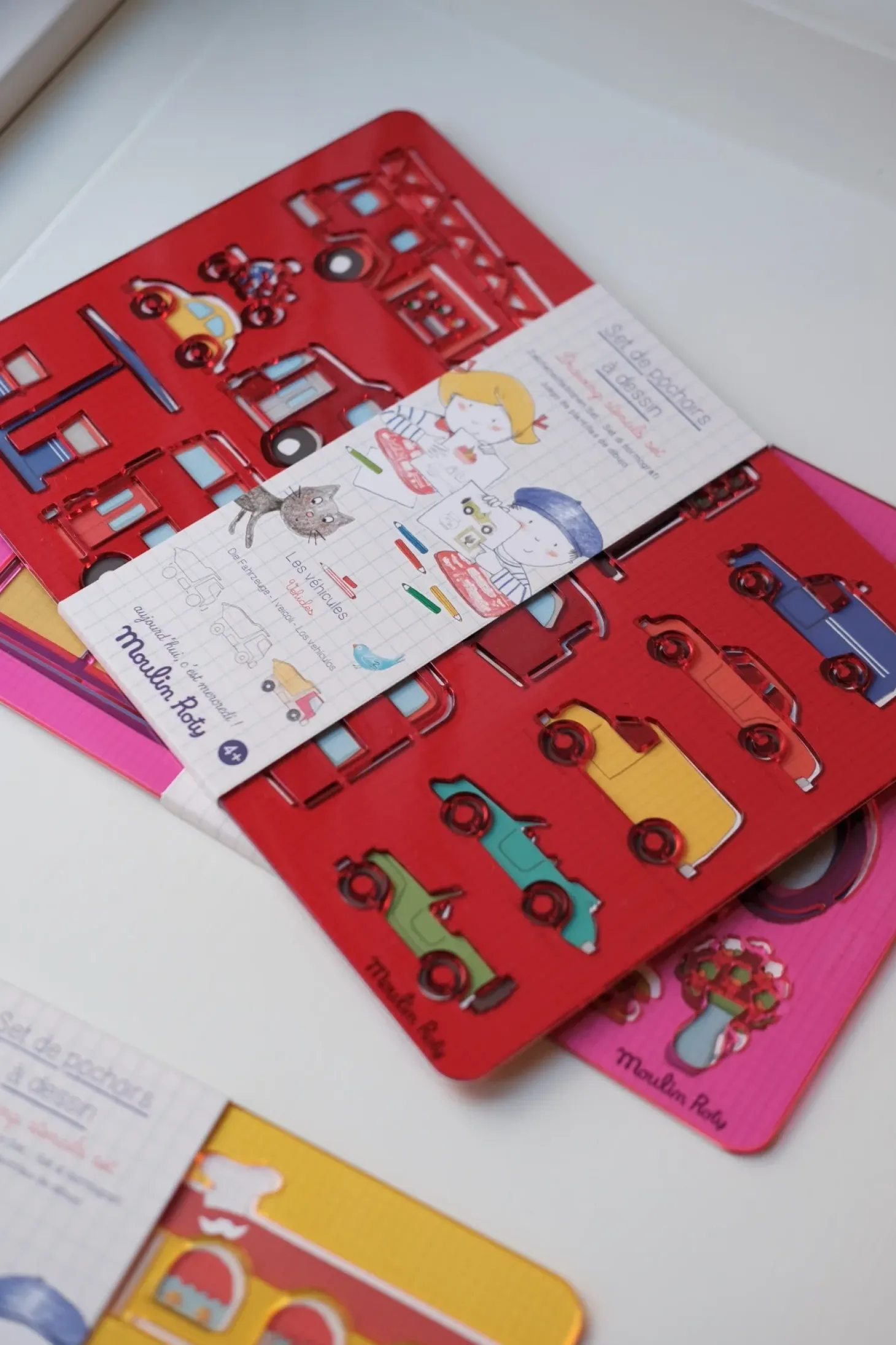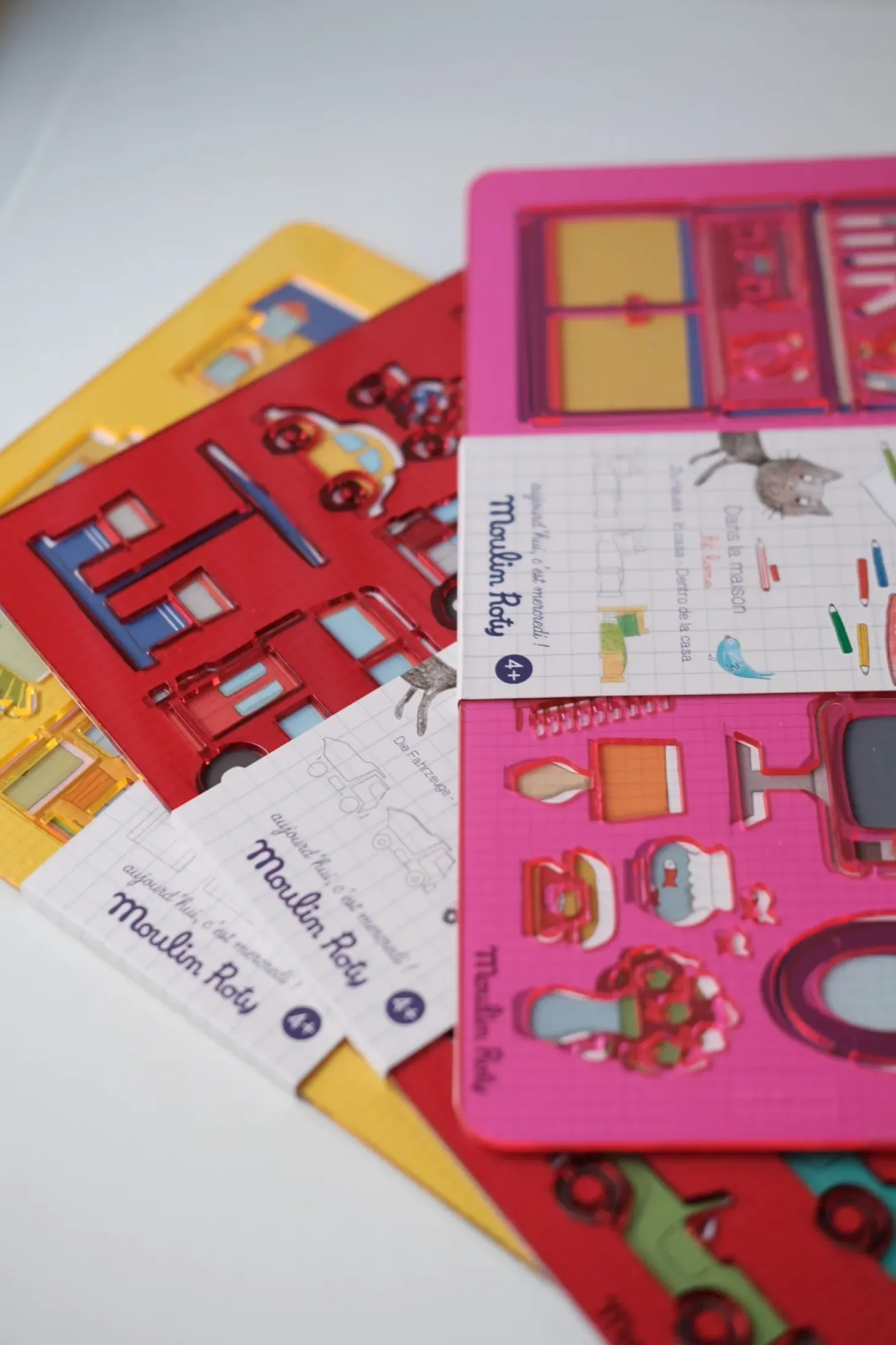 Hvert sæt indeholder 2 skabeloner fra 1 af 3 temaer: I byen, Køretøjer og I hjemmet. Skriv hvilket tema du ønsker, så sender vi dig den. Fremstillet af plastik for at kunne genbruges et utal af gange. Vaskbar overflade.Størrelse: 27 x 19 cm