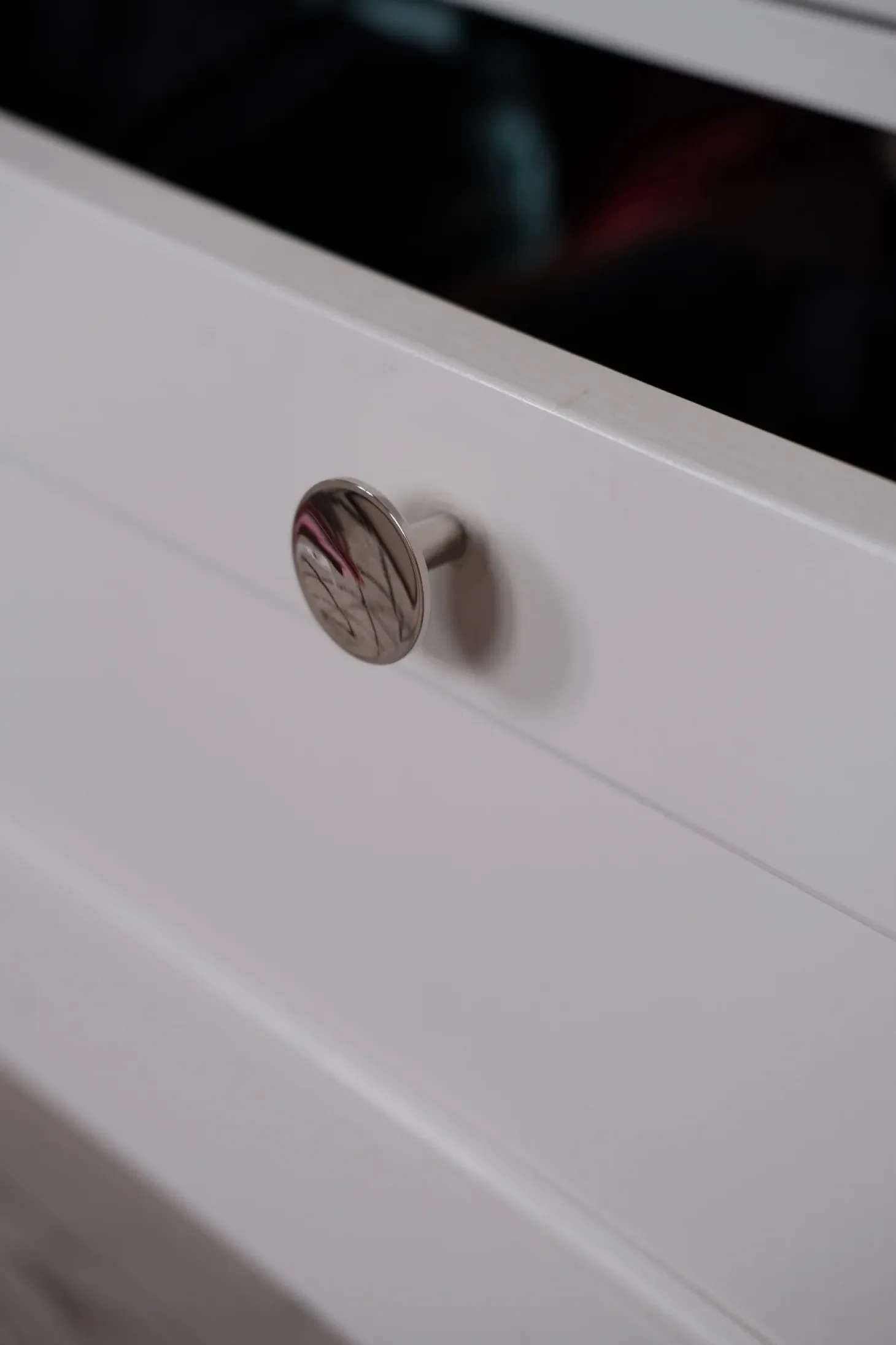En møbelknap, som er et enkelt og anvendeligt greb. Kan benyttes i væg såvel som på skab.