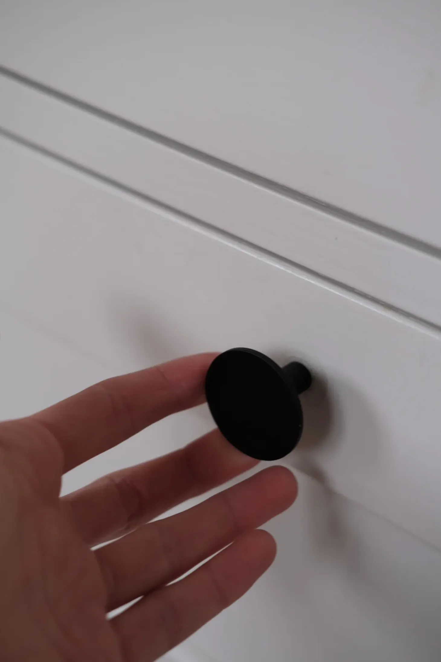 En møbelknap, som er et enkelt og anvendeligt greb. Kan benyttes i væg såvel som på skab.