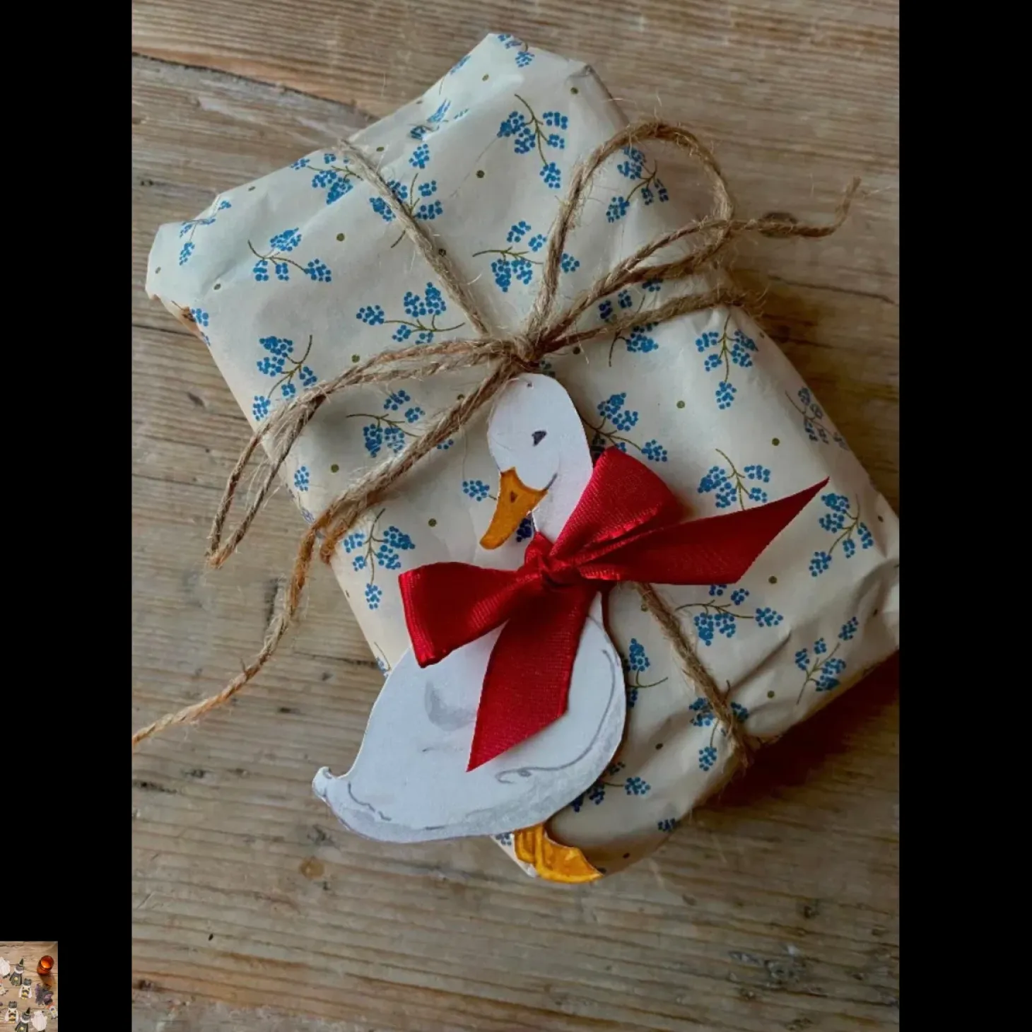 En fin gås med pastel sløjfe. Den er lige til at hænge op og skal ikke klippes ud, som mange af Tall Hat Tales andre produkter.Der er fire forskellige slags gæs, så det bliver en overraskelse, hvilken du modtager. Vi lover, at de alle er søde.