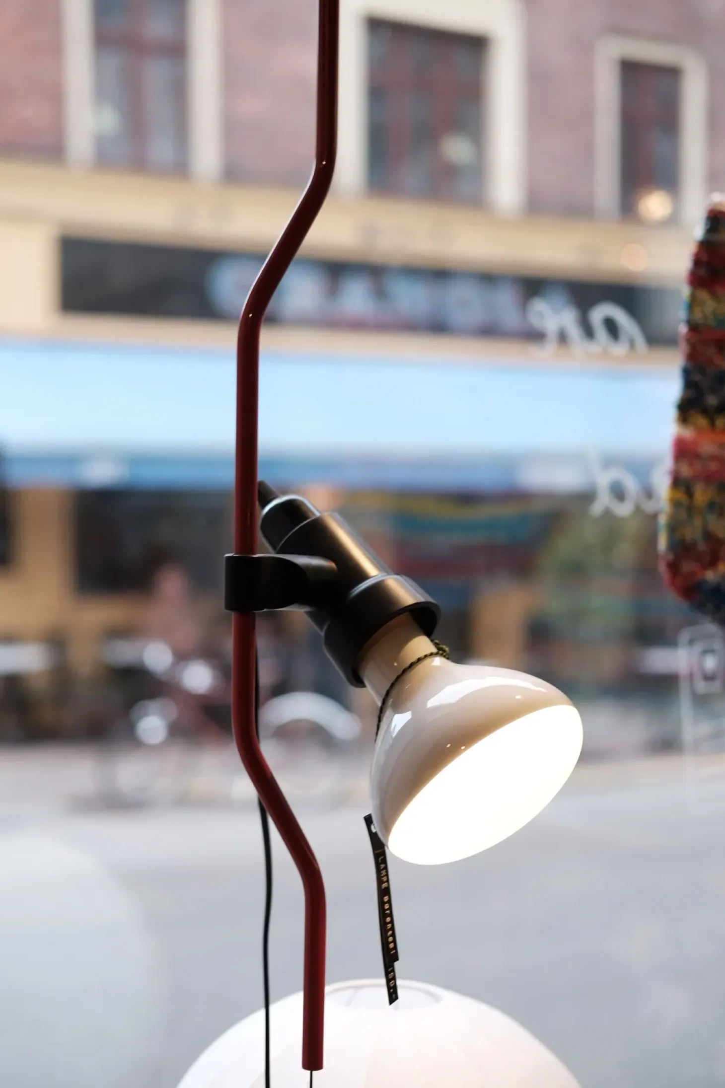 Et af Achille Castiglionis mottos var “Design demands observation”. Det synes vi passer godt til denne lampe, for egentlig ser den ganske almindelig ud, men ved nærmere eftersyn kan man godt se at den er noget særligt.