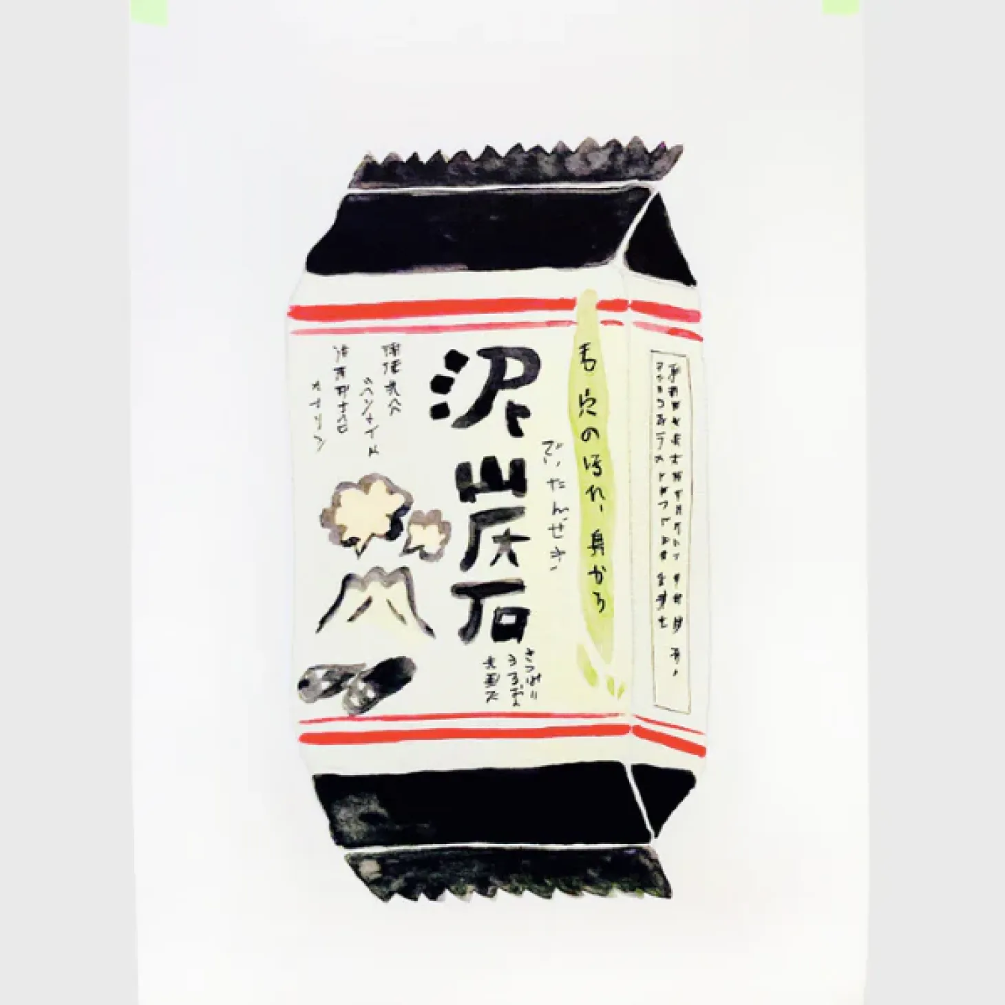 Plakat fra Berlinbaserede Melina Pecharki. Melina er vild med Japan og det er vi også!De smukke akvareller illustrere på en række forskellige prints japansk indpakning, dåser og skrifttegn.