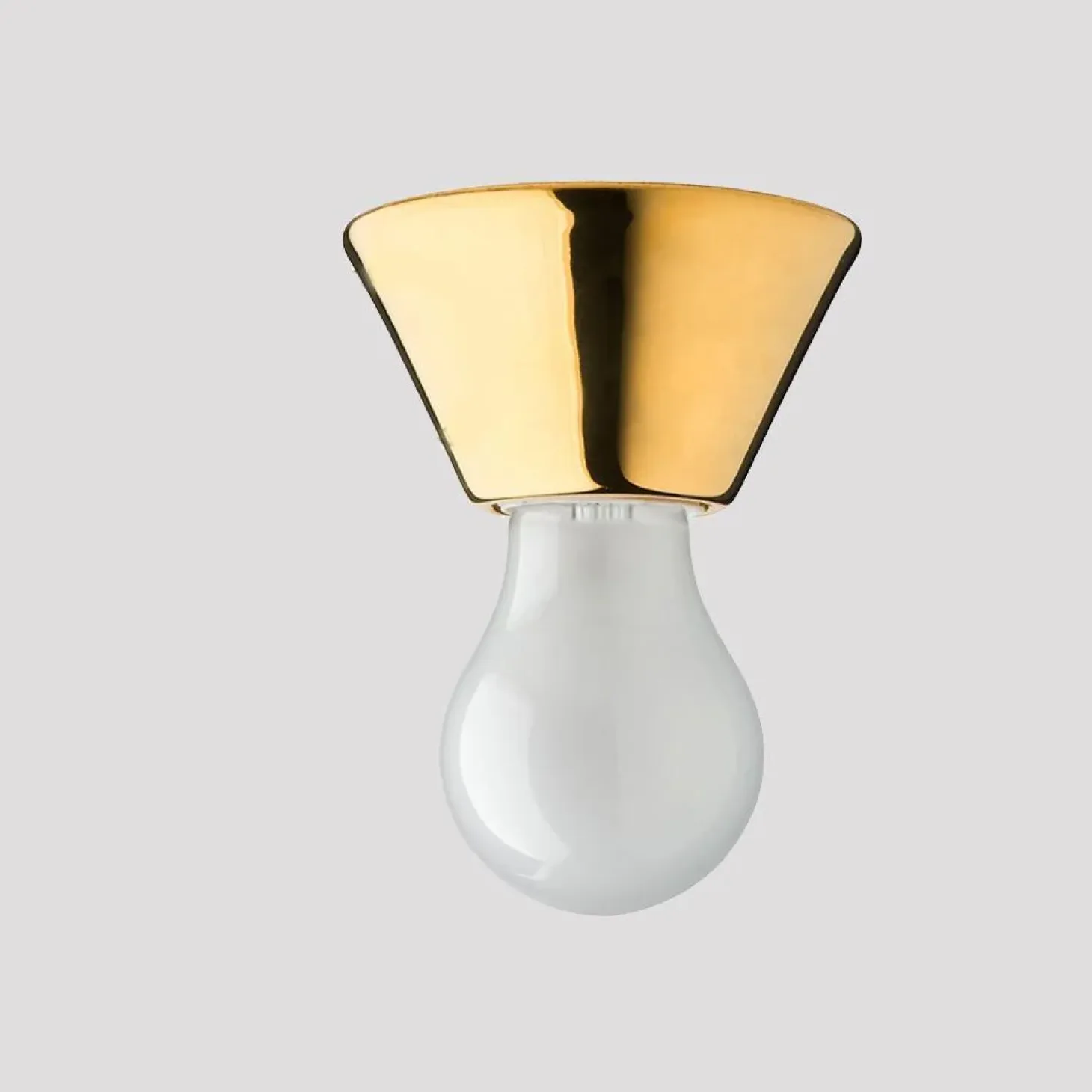 Porcelænslampe til væggen eller loftet. Det er en fordel hvis ledningerne kommer ud samme sted, således at lampen dækker direkte over ledningerne.