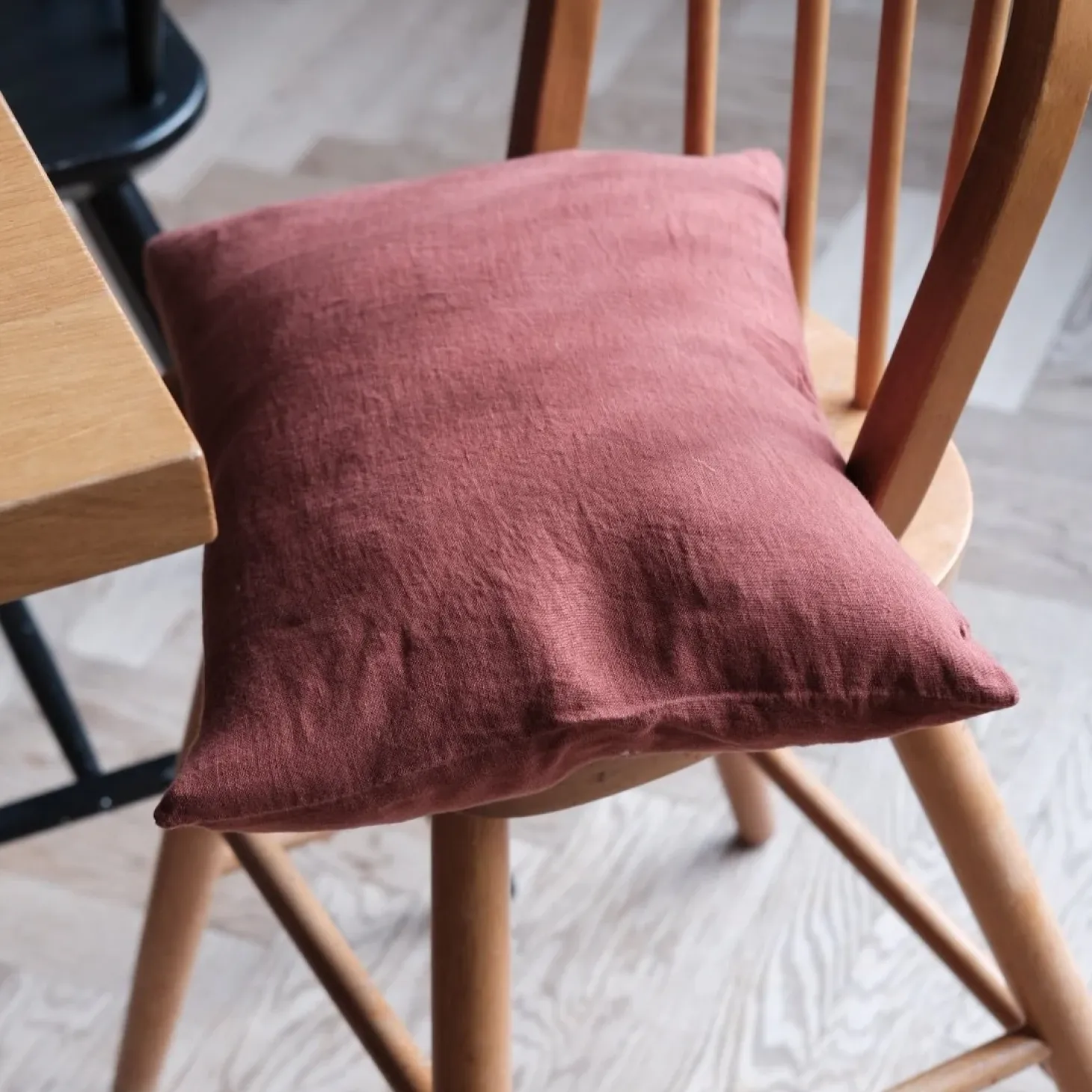 Den lille pude fra franske Linge Particulier er her i en smuk dyb mustensrød. Puden er lavet i lavet af vævet hør, der bagefter er vasket, hvilket giver en helt særlig, blød og holdbar kvalitet, der bare bliver blødere og blødere efter hver vask. Den lille hørpude er fin at bruge som lille ekstrapude eller f.eks. på børneværelset.