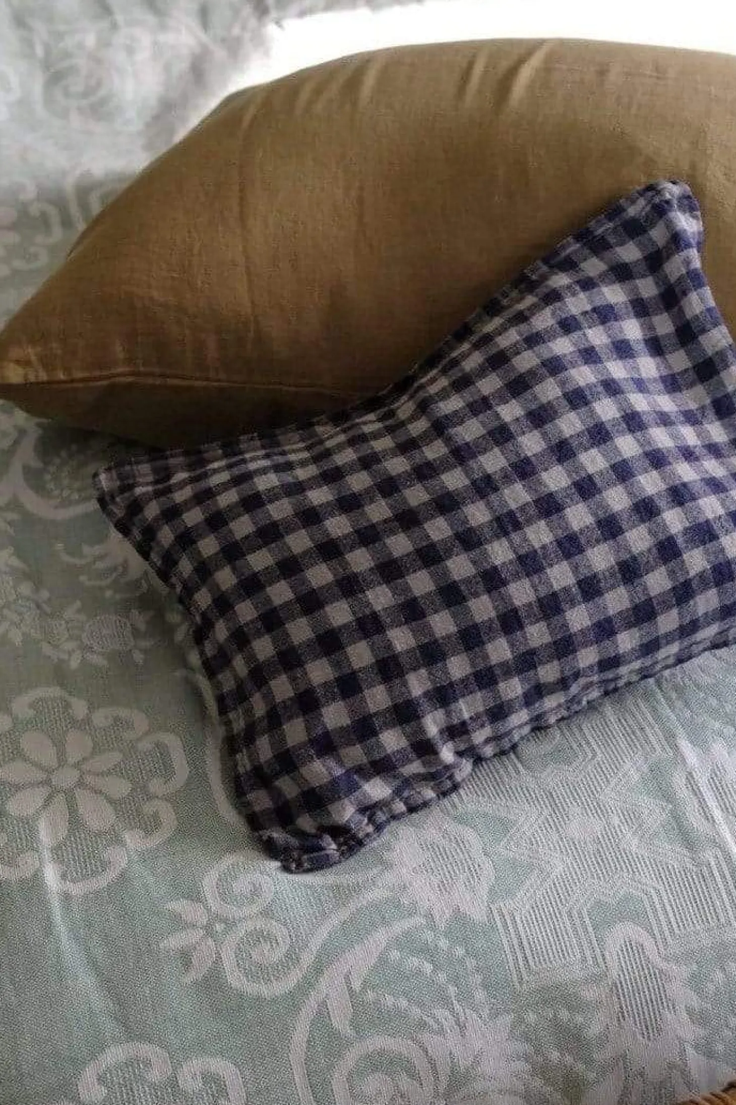 En fin, lille pude, der måler 30 cm x 40 cm i 100% hør med blå gingham fra det franske firma Linge Particulier. Stoffet er vævet i hør, hvorefter det er vasket, hvilket giver den meget lækre og bløde kvalitet, der bare bliver blødere og blødere ved brug og vask. De franske designere kan altså noget med farver – dybe, varme og lækre! Vi elsker at kombinere de små, mønstrede puder med de større størrelser i rolige farver, og den lille pude er også god, som en ekstrapude bag ryggen eller nakken – eller på børneværelset.
