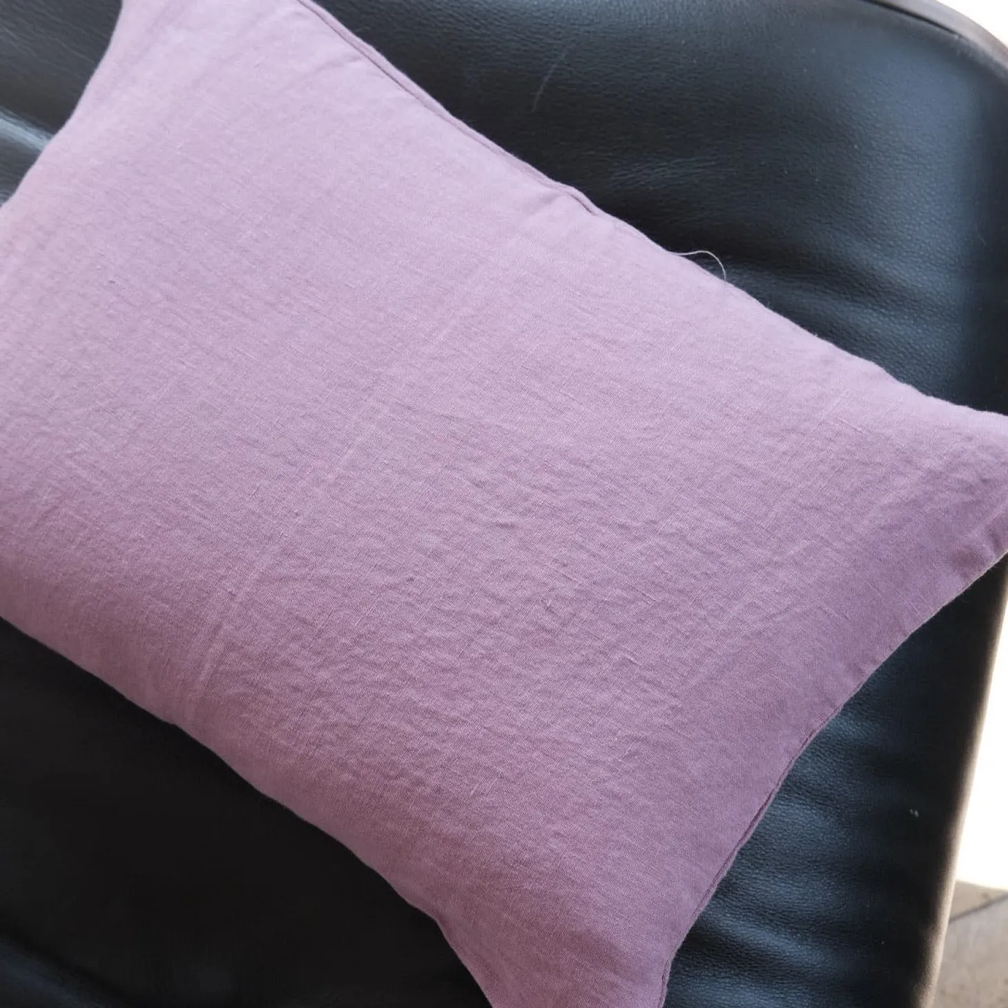 Den lille pude fra franske Linge Particulier er her i en dyb lilla farve. De kan noget særligt med farver… Puden er lavet i lavet af vævet hør, der bagefter er vasket, hvilket giver en helt særlig, blød og holdbar kvalitet, der bare bliver blødere og blødere efter hver vask. Den lille hørpude er dejlig at bruge som lille ekstrapude eller f.eks. på børneværelset.
