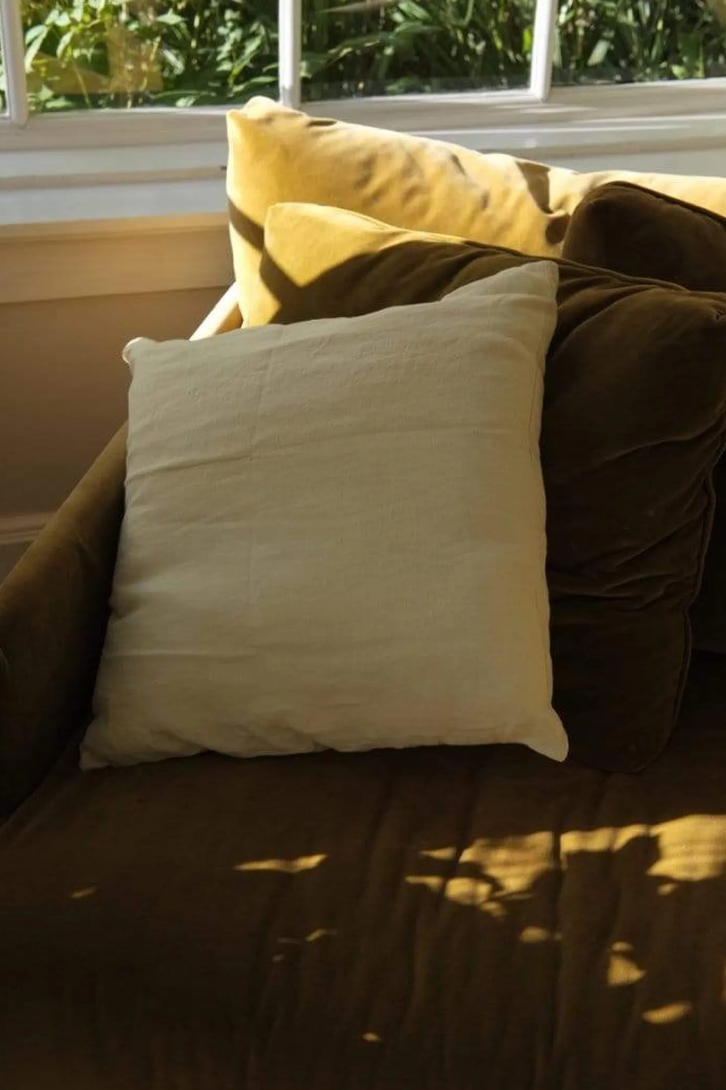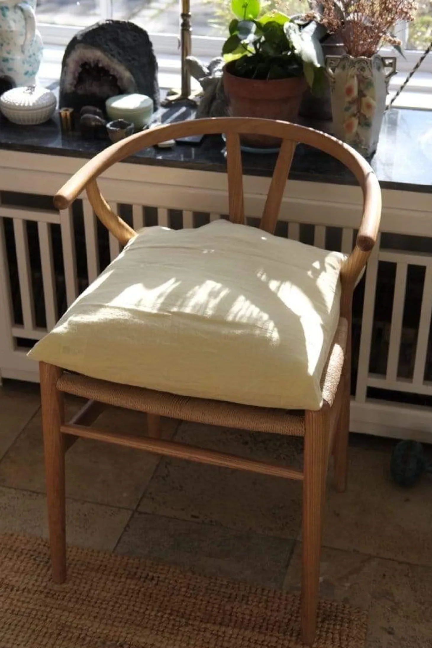 Hørpude fra franske Linge Particulier i den fineste sarte gule farve. Pudebetrækket er vævet i hør, hvorefter det er vasket, hvilket giver den meget lækre og bløde kvalitet, der bare bliver blødere og blødere ved brug.