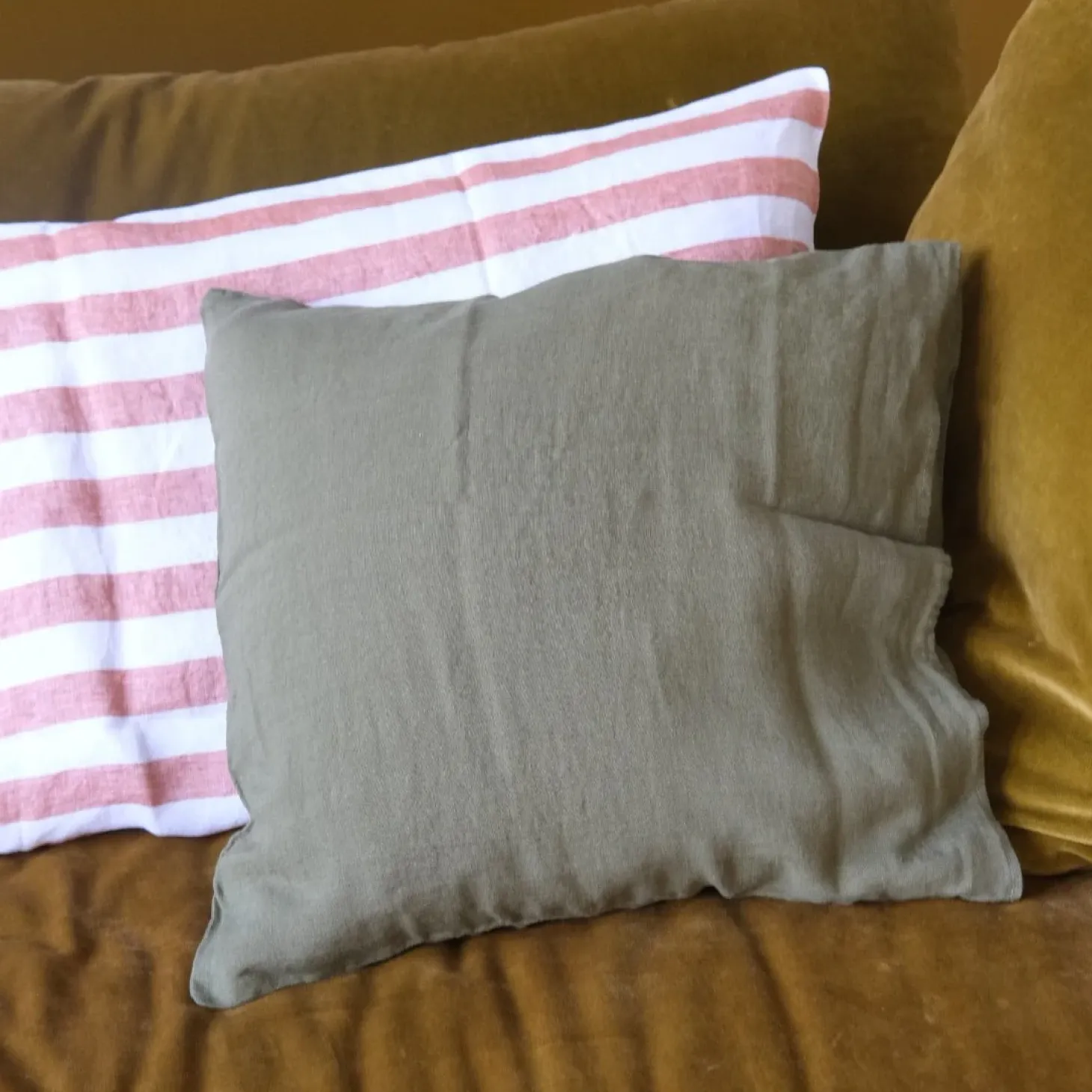 En dejlig pude i hør fra franske Linge Particulier. Puden er lavet af vævet hør, der bagefter er vasket, hvilket giver en helt særlig, blød og holdbar kvalitet, der bare bliver blødere og blødere efter hver vask. Her i en smuk grøn farve.