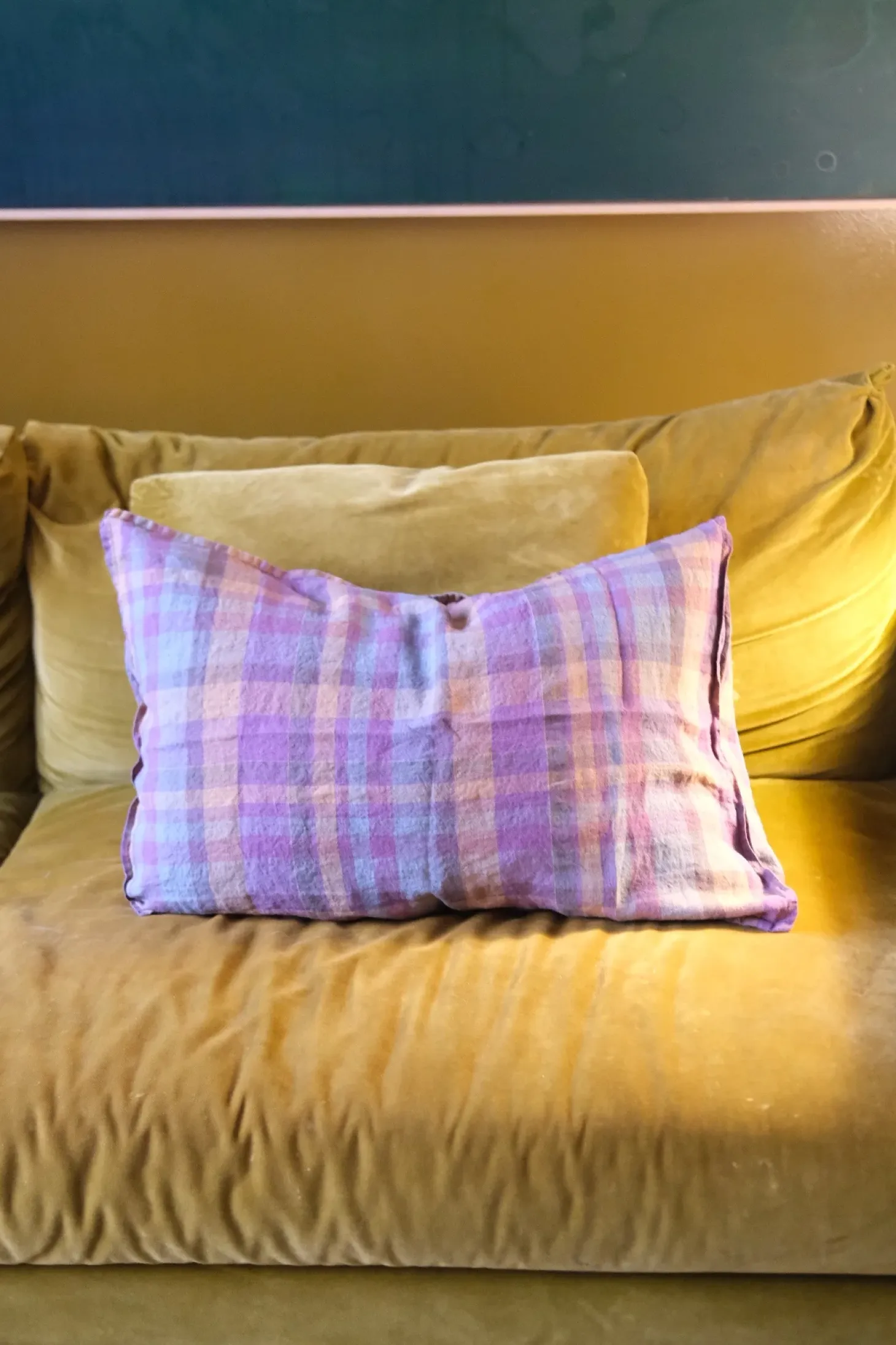 Pude i vasket hør i en glad stribet udgave fra franske Linge Particulier. De kan virkelig noget med farver – de er særligt dybe og flotte.