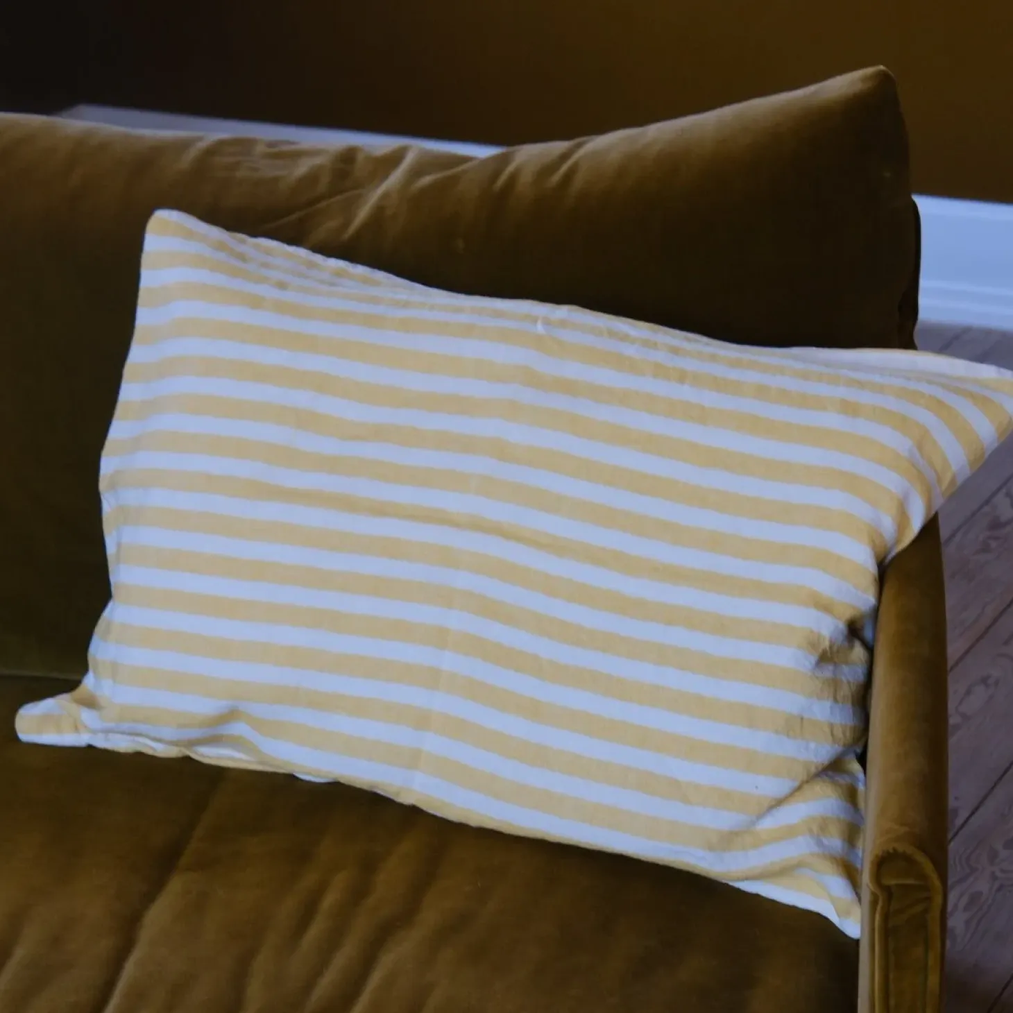 Pude i vasket hør i en glad stribet udgave fra franske Linge Particulier. De kan virkelig noget med farver – de er særligt dybe og flotte.