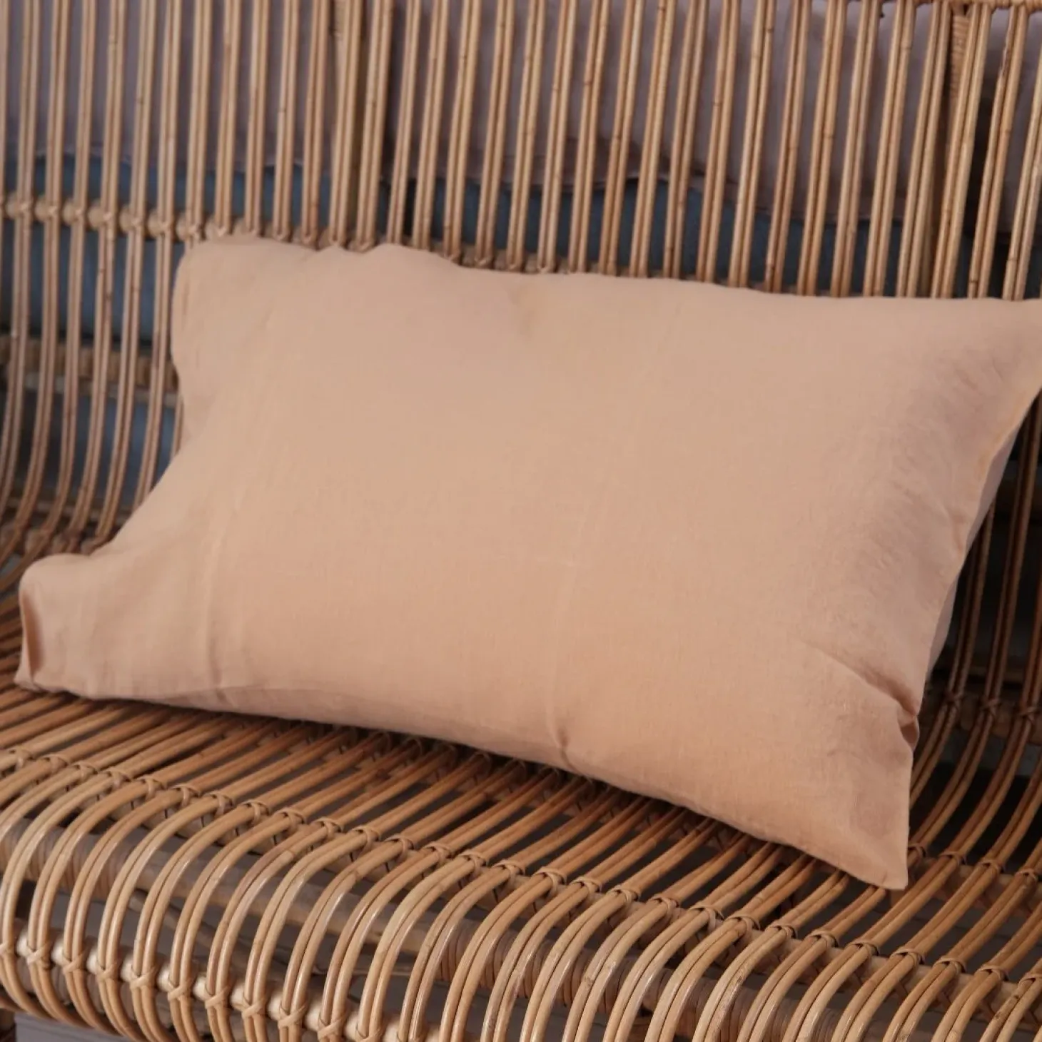 En dejligt stor hørpude fra franske Linge Particulier i lys nøddebrun. De kan bare noget helt særligt med farver… Pudebetrækket er lavet i vævet hør, der bagefter er vasket, hvilket giver en helt særlig, blød og holdbar kvalitet, der bare bliver blødere og blødere efter hver vask. Jeg elsker at bruge denne størrelse i sengen som ‘læsepude’ og udendørs i en kurvestol.