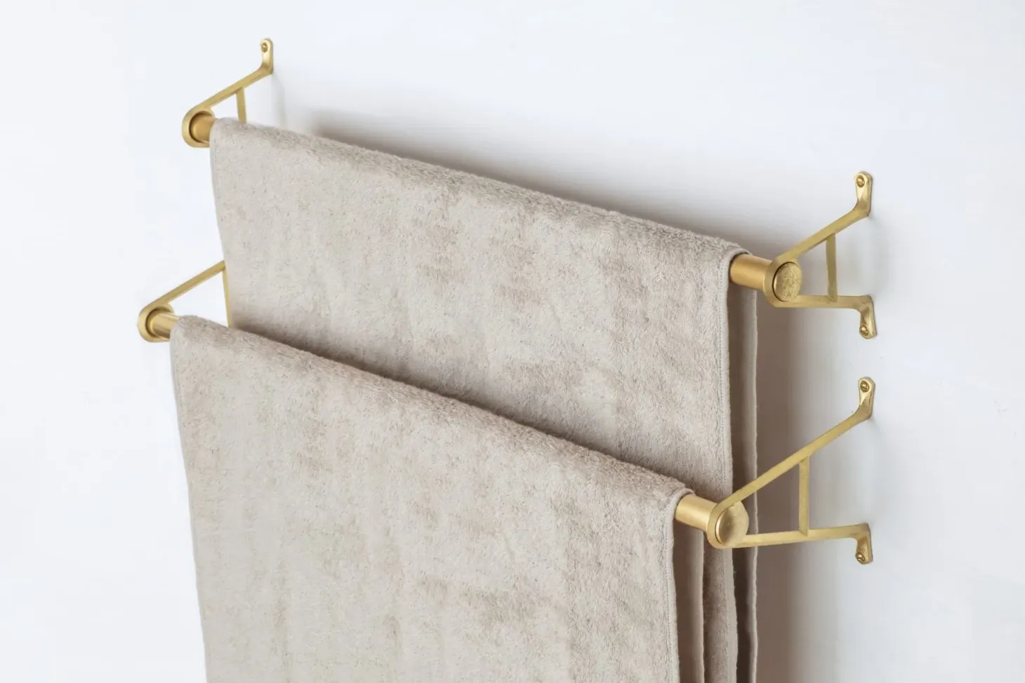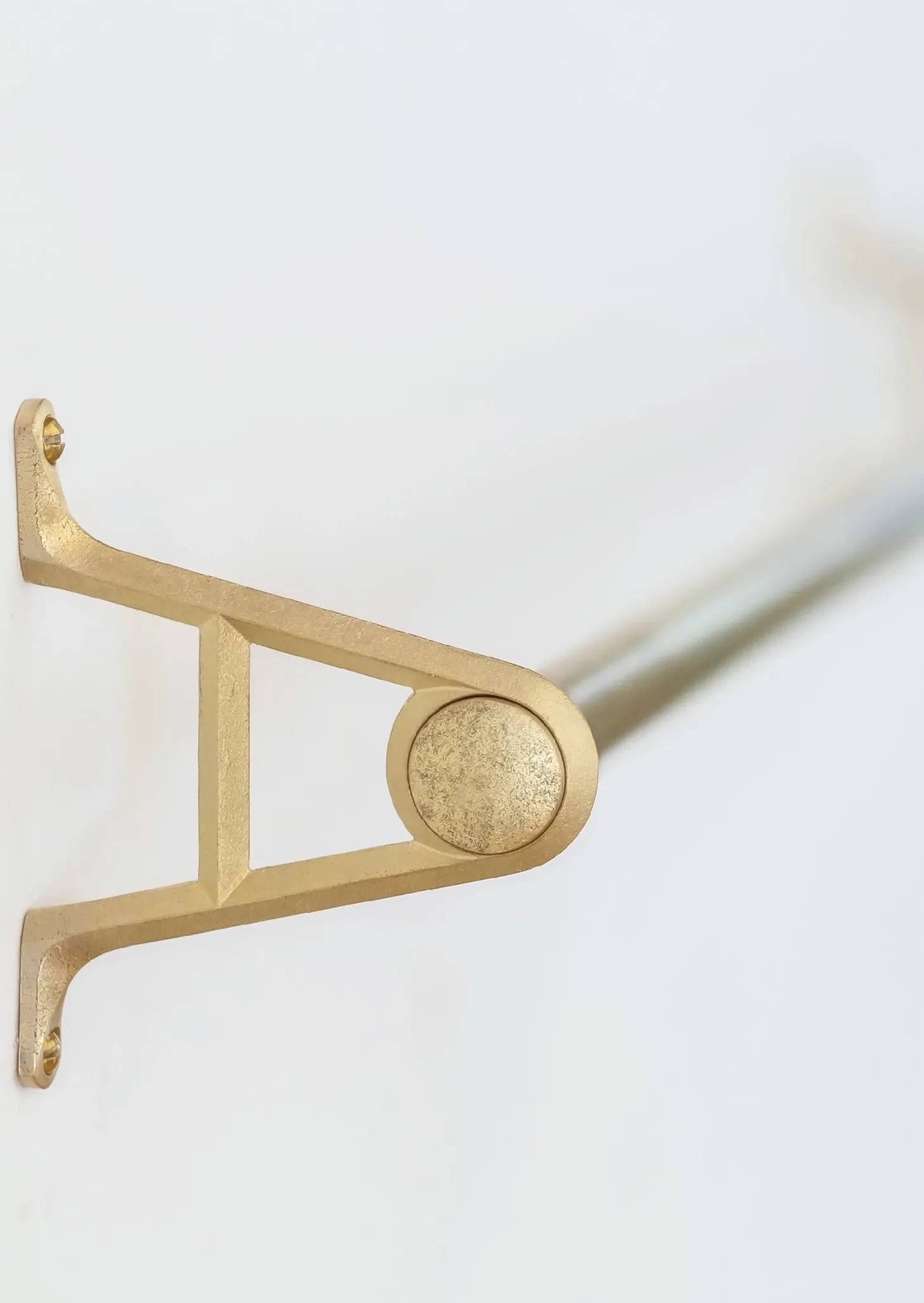 Utrolig smuk messing stang til ophæng af håndklæder og viskestykker, som både kan hænges op eller hænges på en krog. Den er meget elegant og vil være en daglig glæde hvor end den bruges.