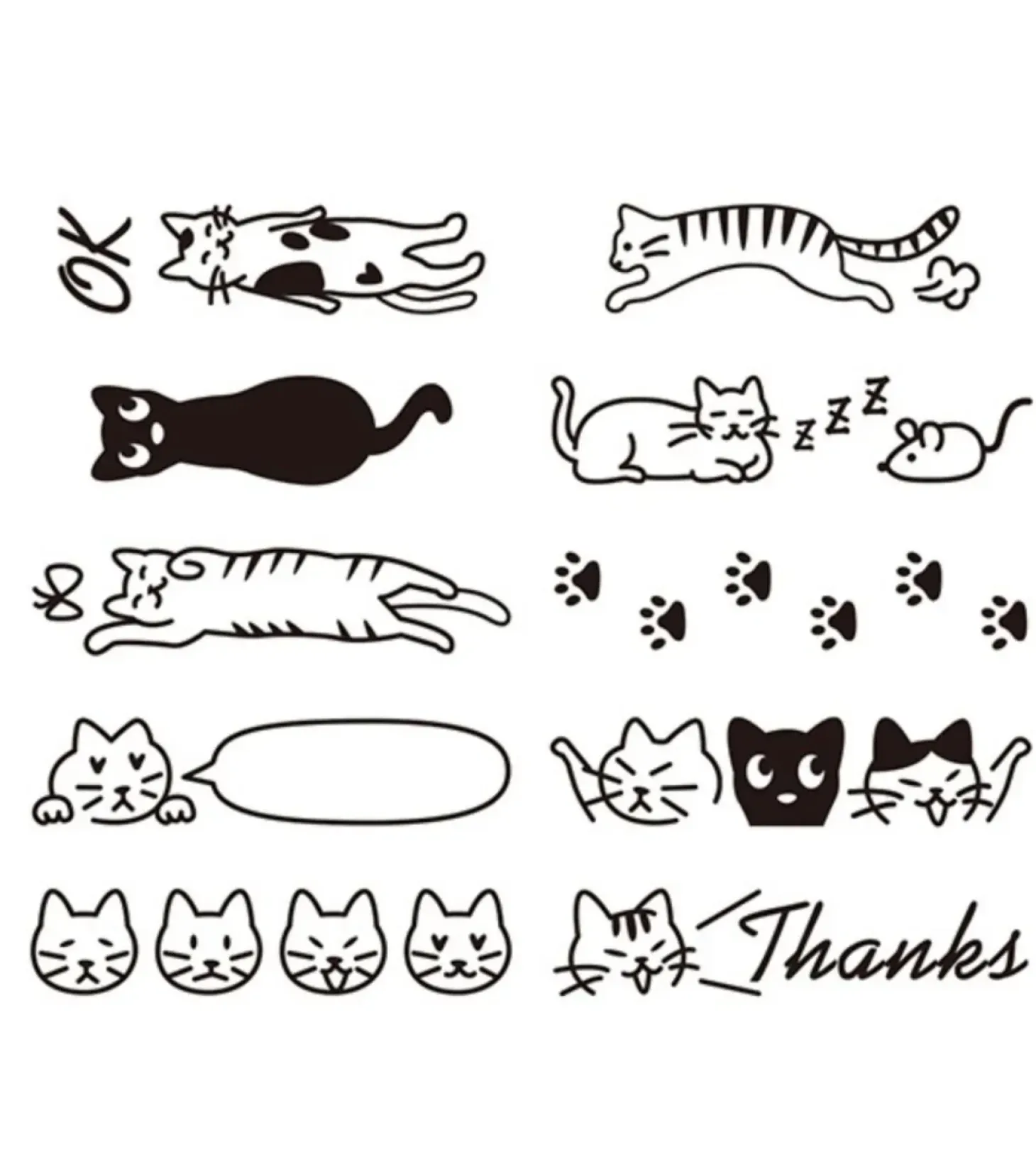 Et stempel med nuttede katte. Stemplet har 10 motiver og kan roterer mellem dem. Det er lige til at bruge på gaver, madpakker eller bare som en lille hilsen.