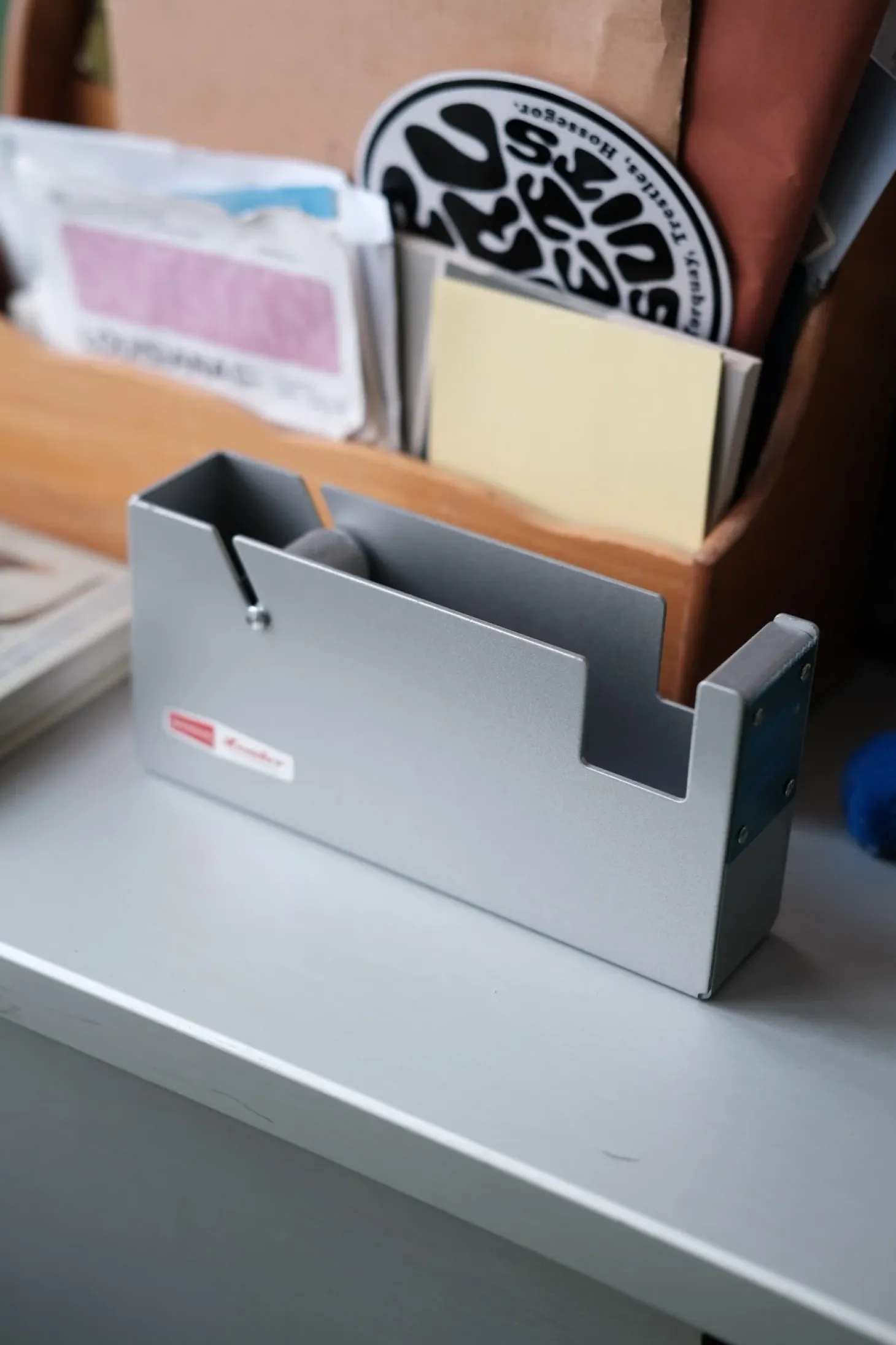 Flot, japansk tapedispenser i massiv metal. Taperulleholderen her er i knald god kvalitet og skærer knivskarpt. Og så har den tyngde. Genialt!