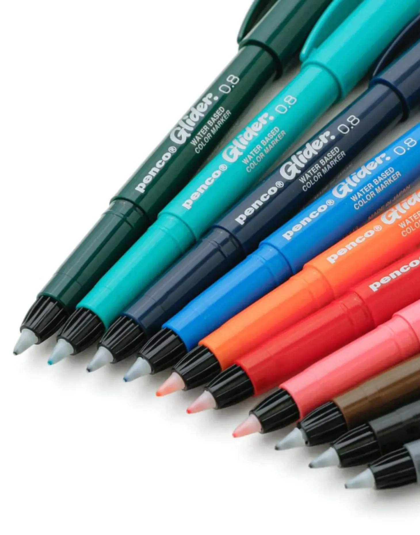 Pencos glider penne er bløde vandbaserede tuscher. Den har en fin 0.8mm spids, så man kan skrive småt og lave fine detaljer.
