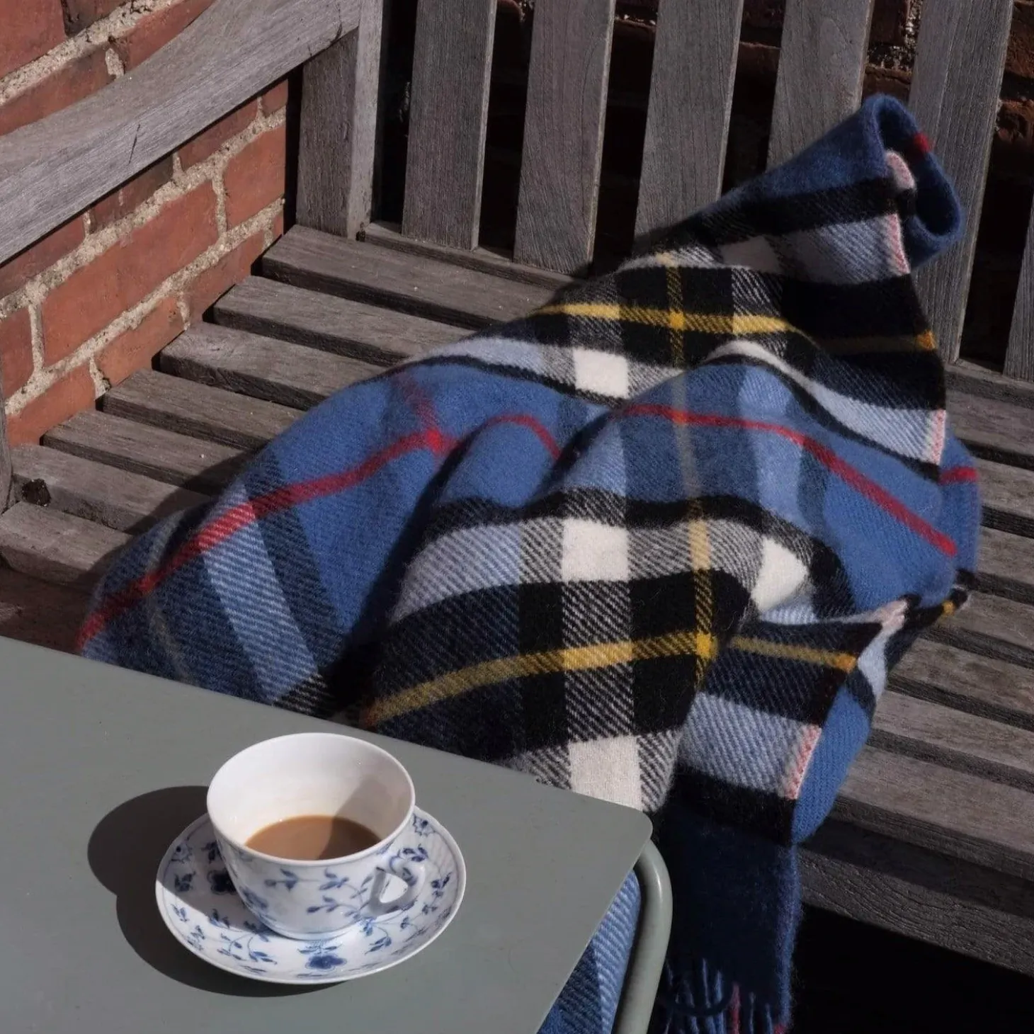 Lækkert og klassisk uldtæppe – model Tartan Rug – fra det britiske firma Tweedmill i blå tern. Plaiden er dejligt blød og varm og perfekt til ekstra hygge i stuen eller i soveværelset. Og så er tæppet også både holdbart og skønt at bruge udendørs. Jeg bruger i øvrigt også uldtæppet som sengetæppe til min yngste i børneværelset …