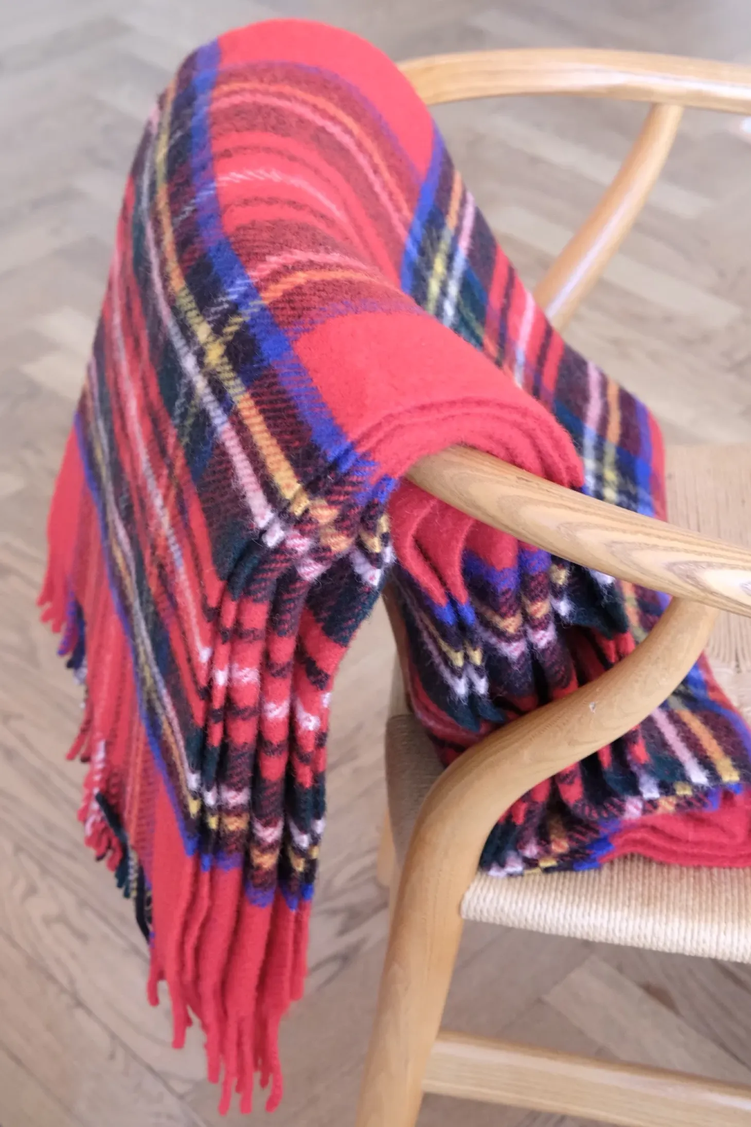 Lækkert og klassisk uldtæppe – model Tartan Rug – fra det britiske firma Tweedmill i flotte røde tern. Plaiden er dejligt blød og varm og perfekt til ekstra hygge i stuen eller i soveværelset. Og så er tæppet også både holdbart og skønt at bruge udendørs. Jeg bruger i øvrigt også uldtæppet som sengetæppe til min yngste i børneværelset …