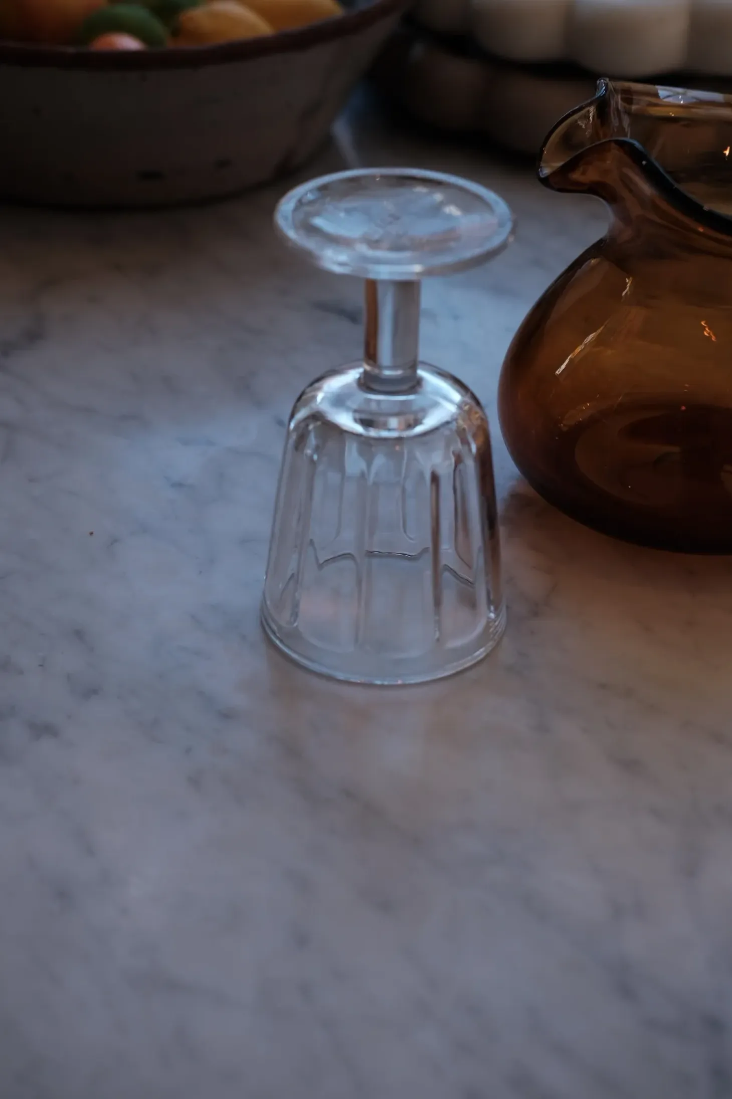 Et glas på stilk med kantede sider. Vi synes den ærlige form giver glasset et cool udtryk, og vil passe ind i borddækningen – både til hverdag og til fest.