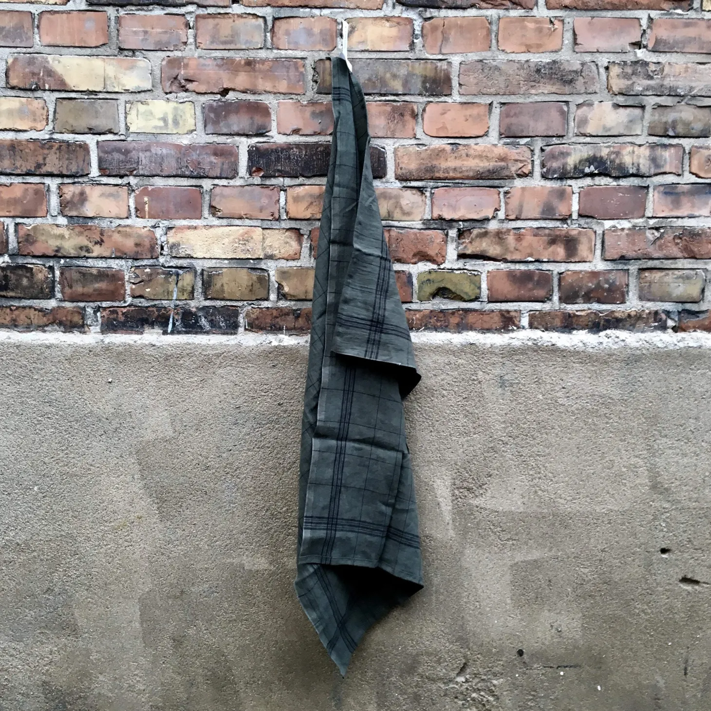 Et klassisk viskestykke i en støvet og mørke grøn. Det er 100% vasket hør, så den er ikke helt ensfarvet, men har et spil i farven og krøller let. Det kan vi godt lide.